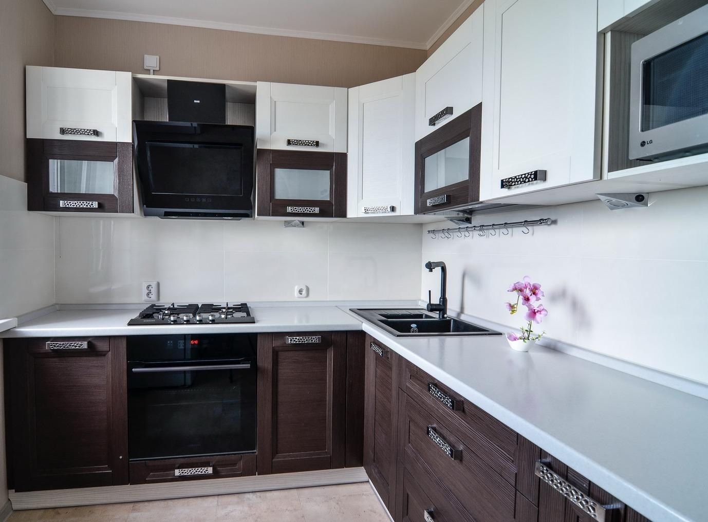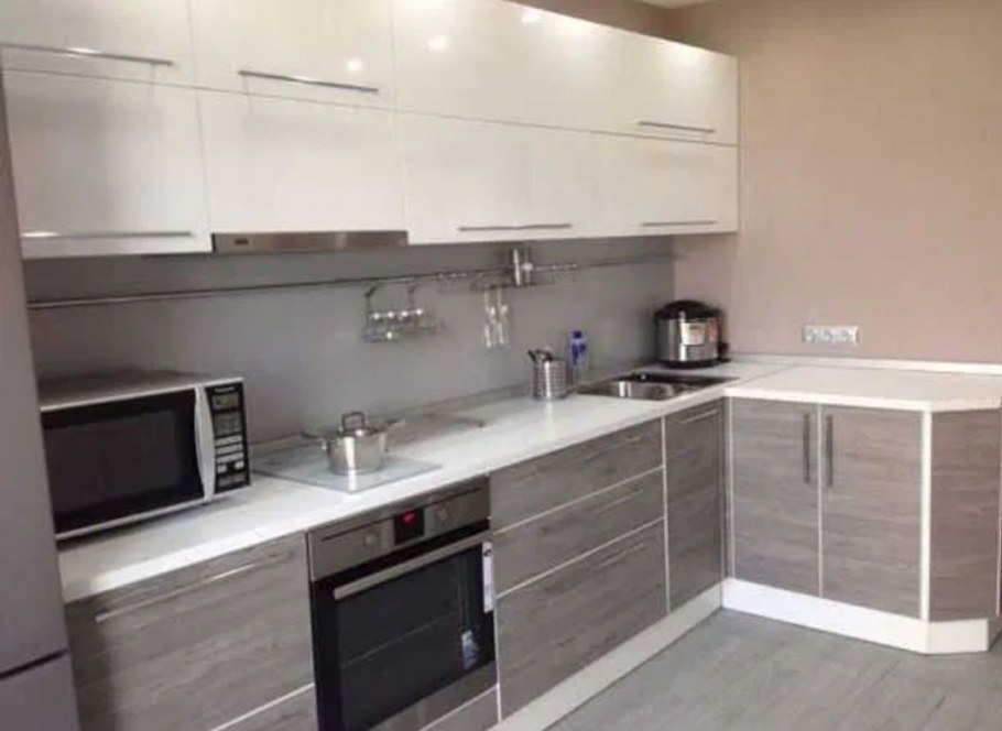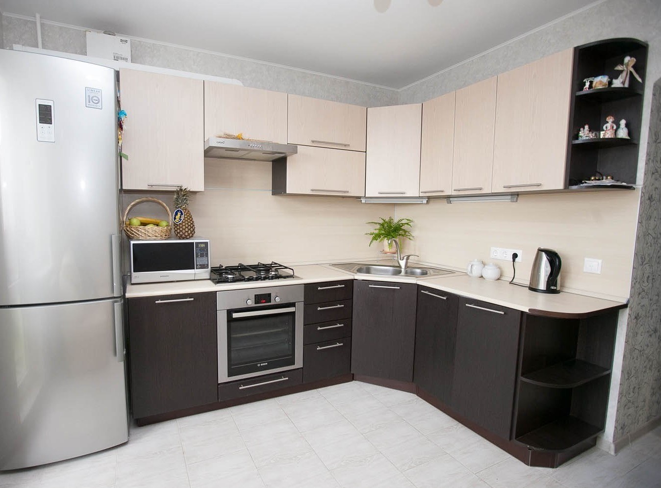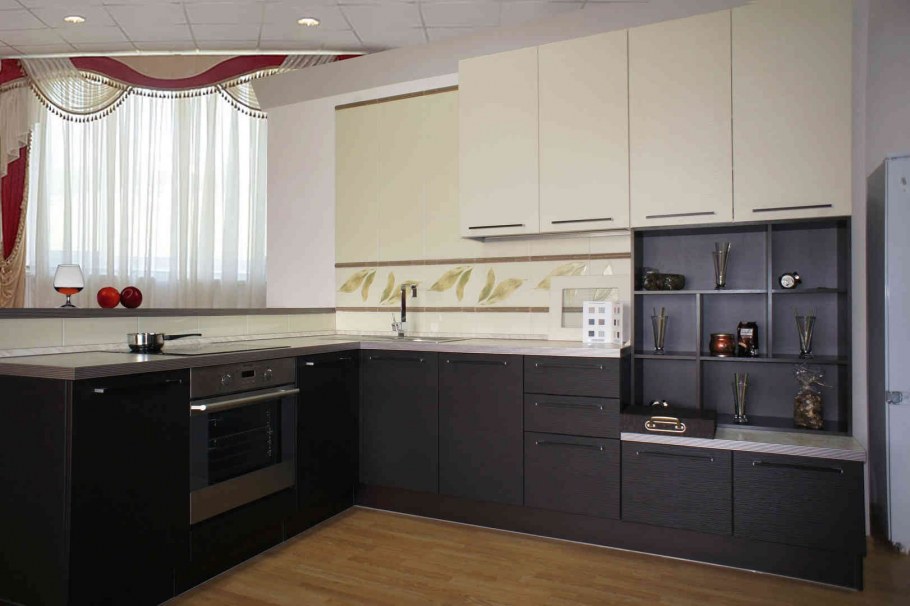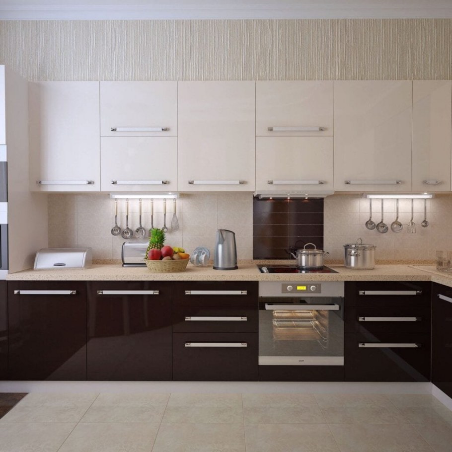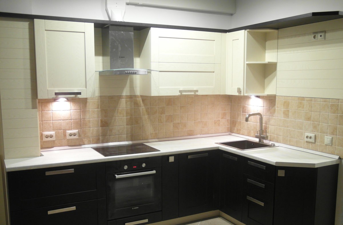 Комбинированный кухонный гарнитур светлый верх темный низ