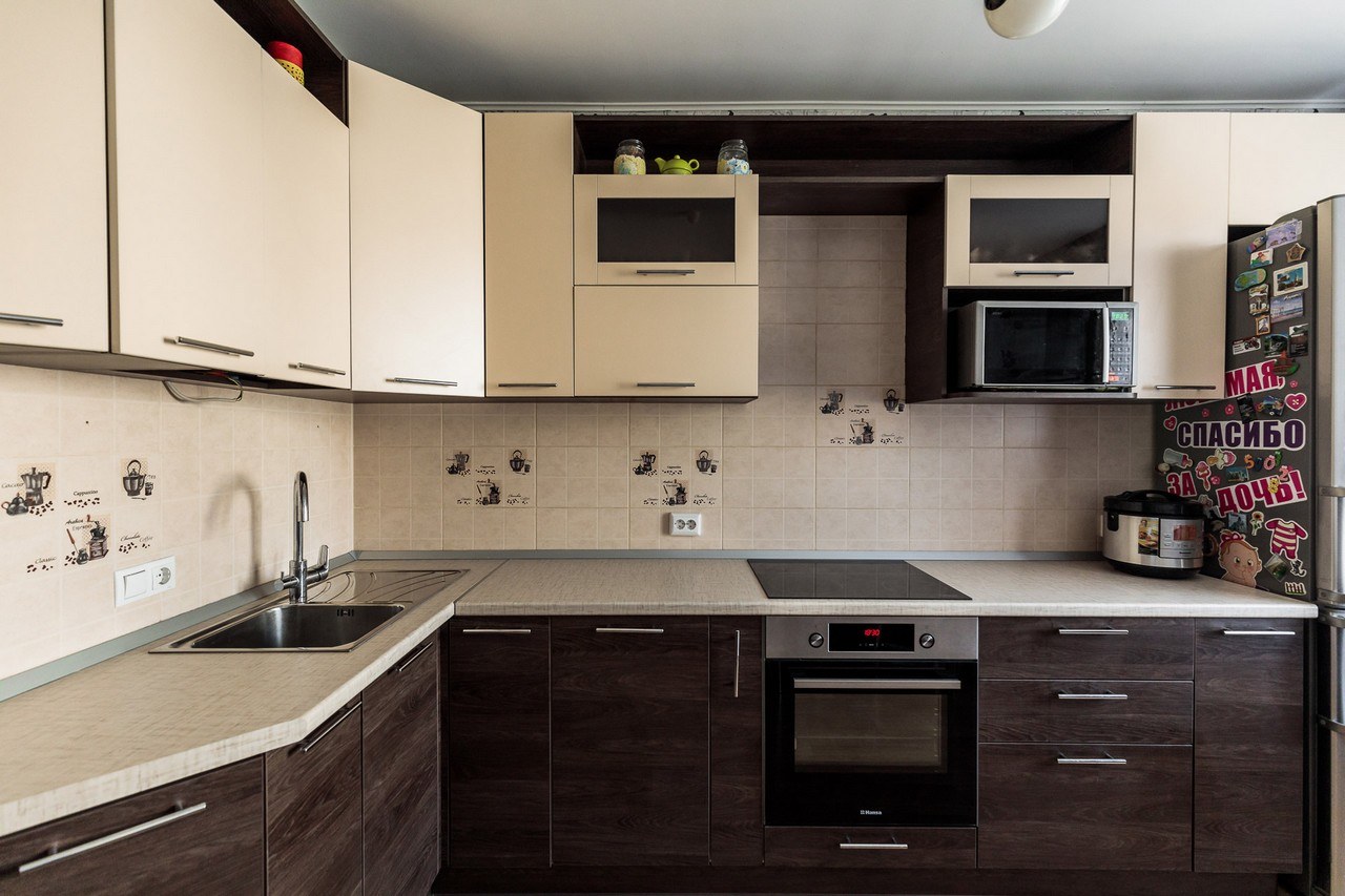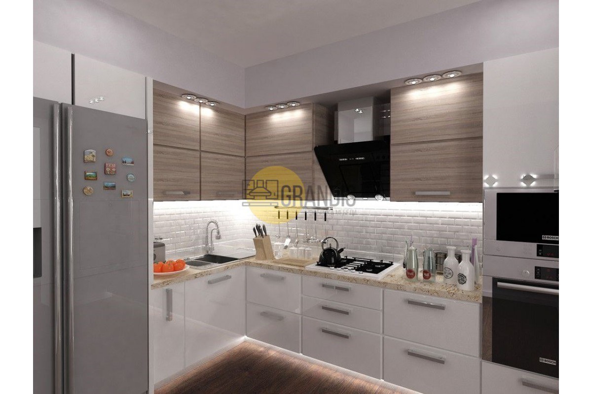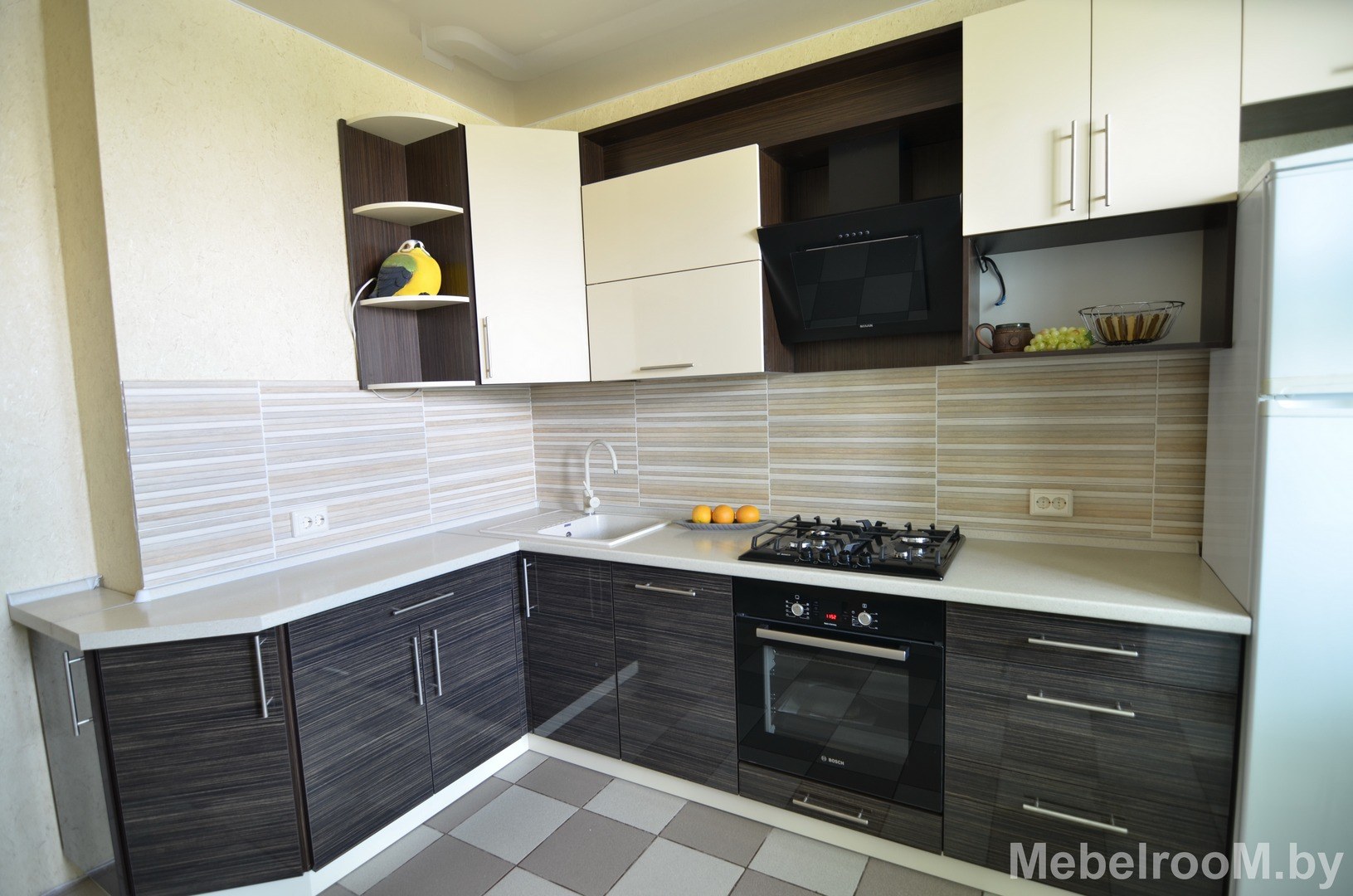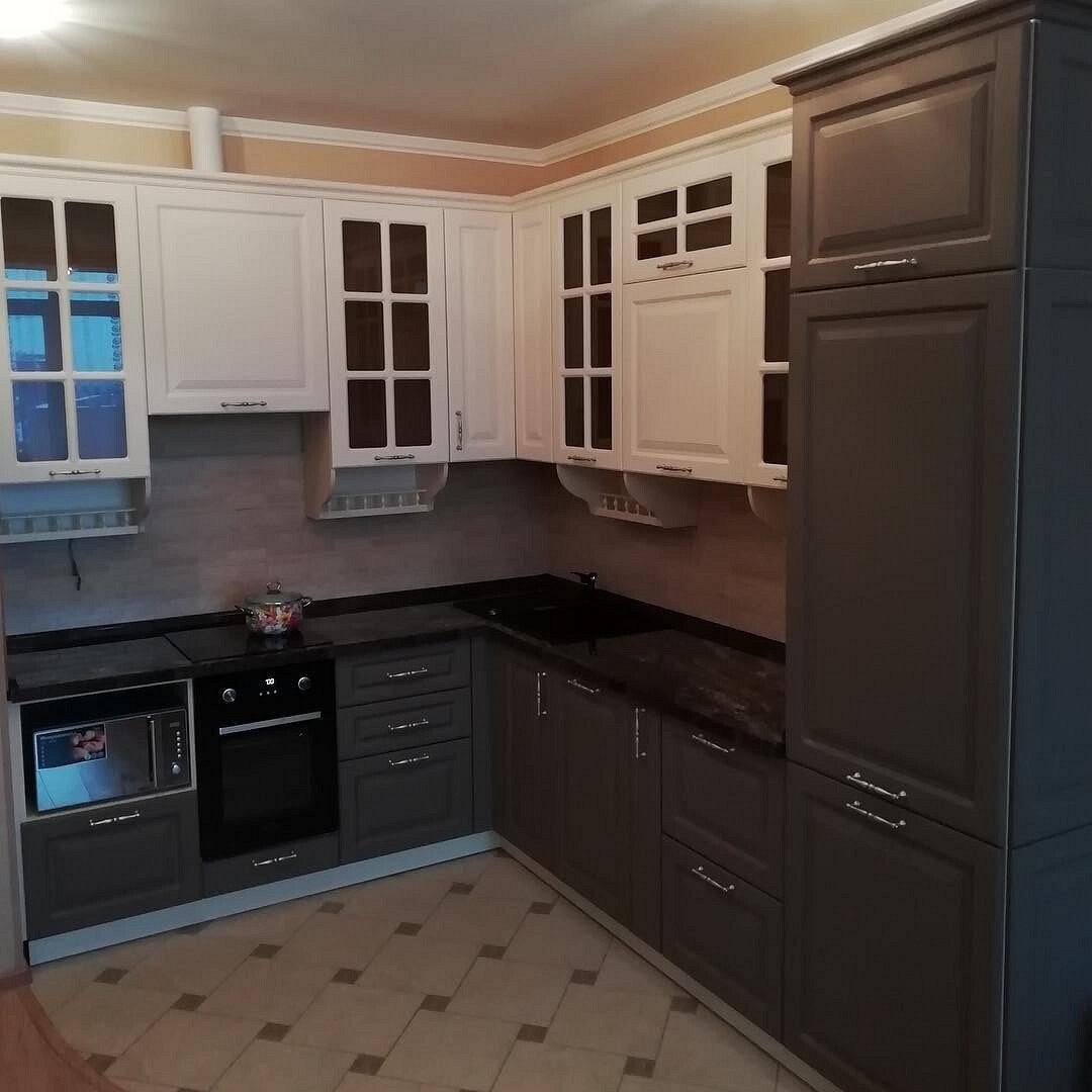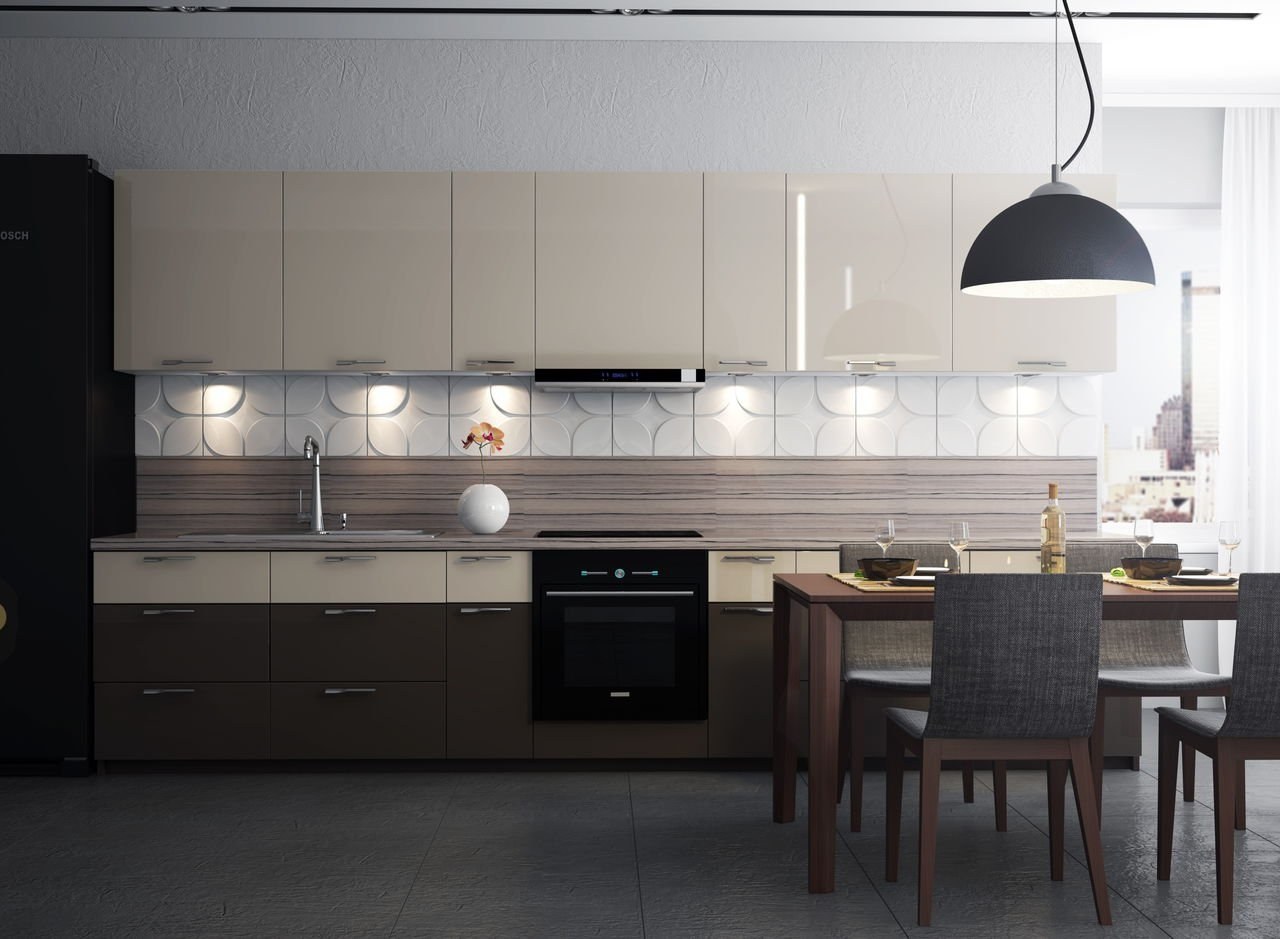 Комбинированный кухонный гарнитур светлый верх темный низ