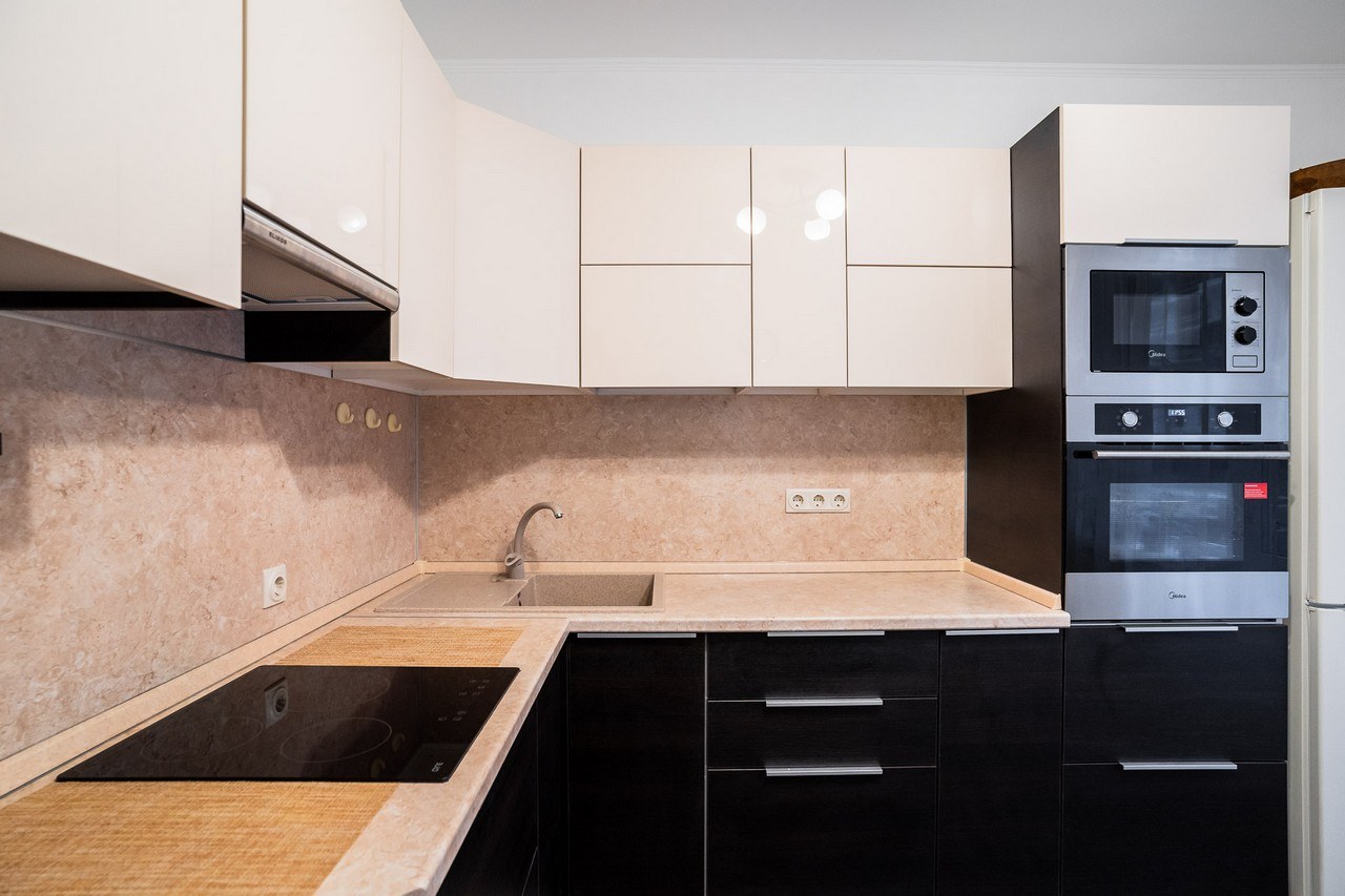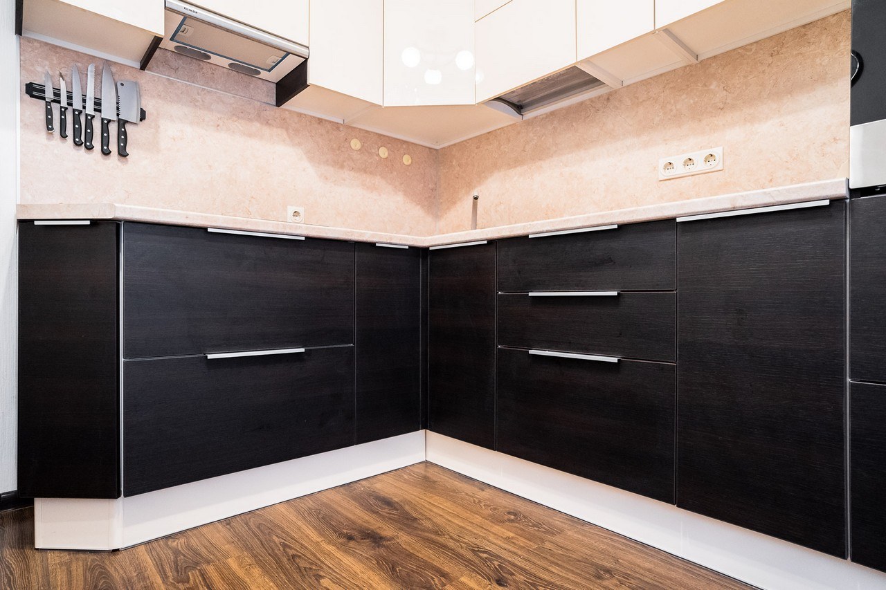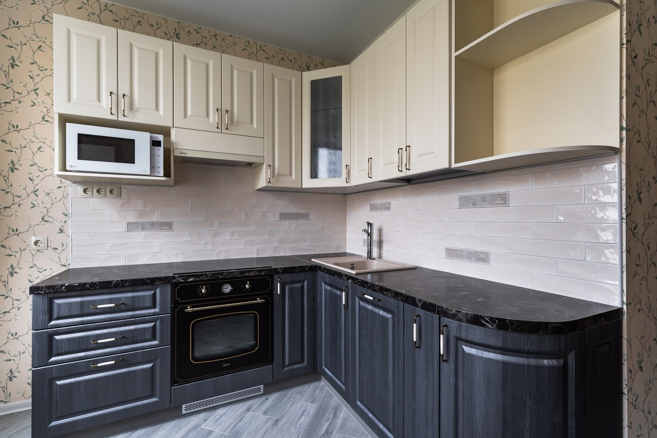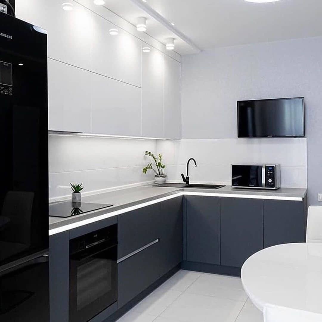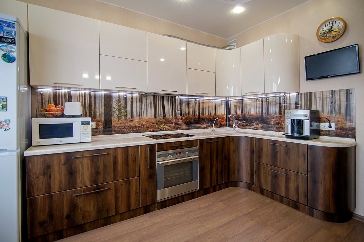 Комбинированный кухонный гарнитур светлый верх темный низ