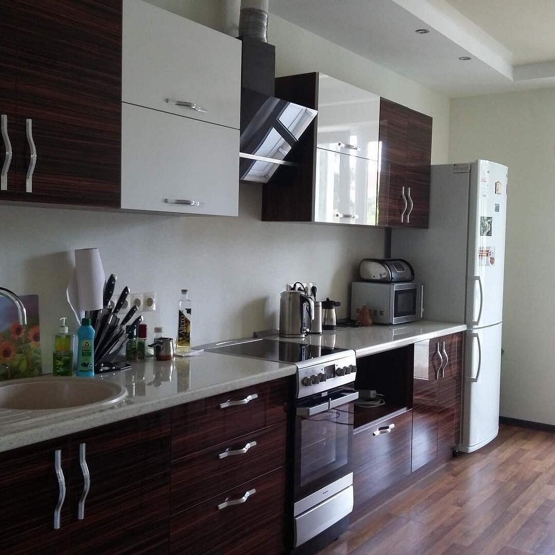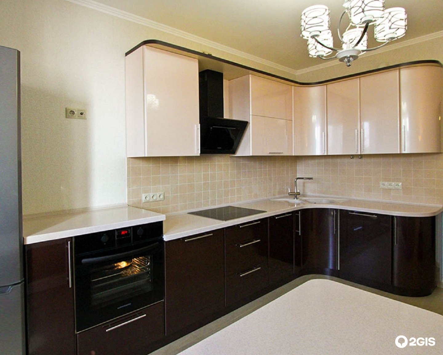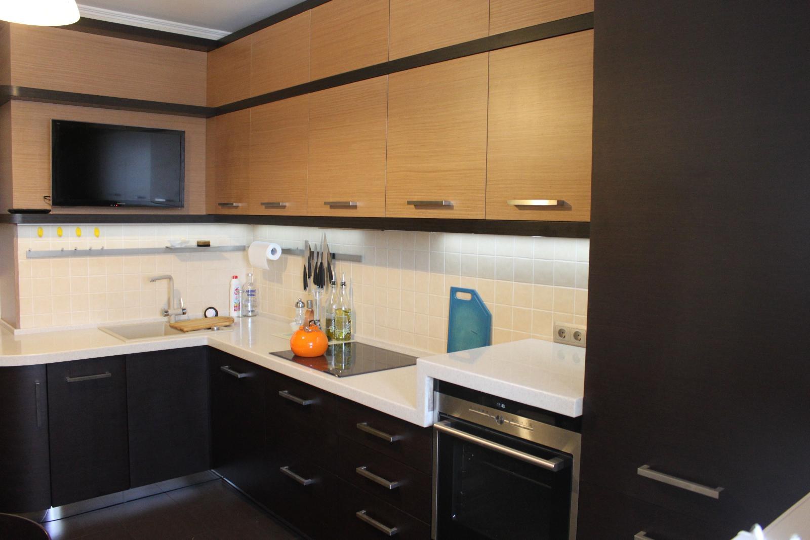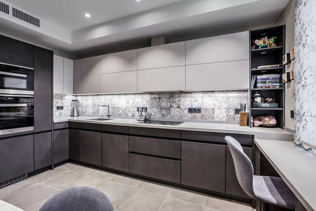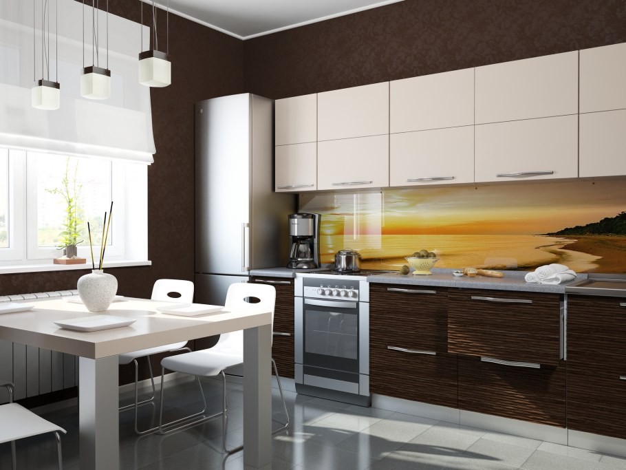 Комбинированный кухонный гарнитур светлый верх темный низ