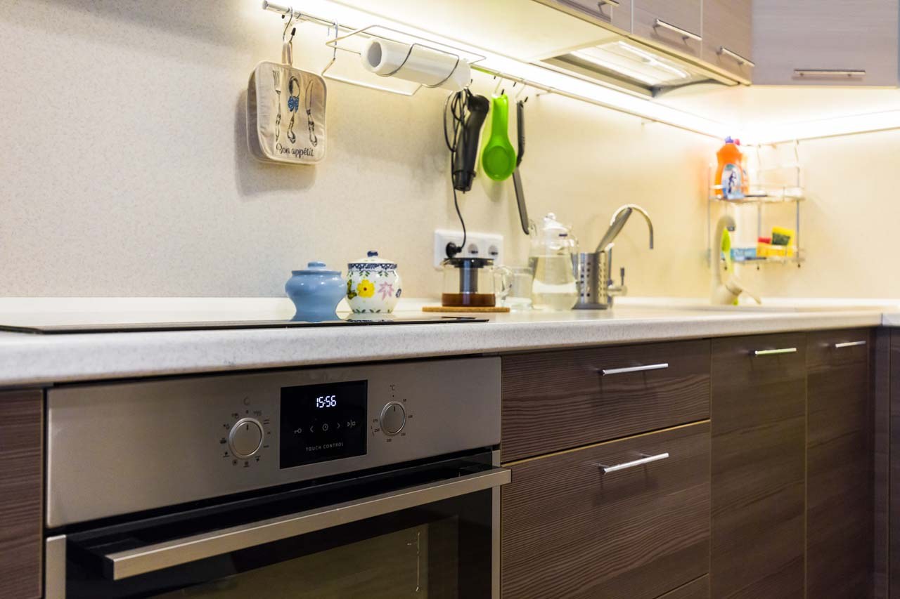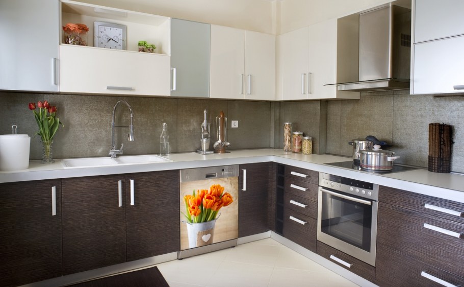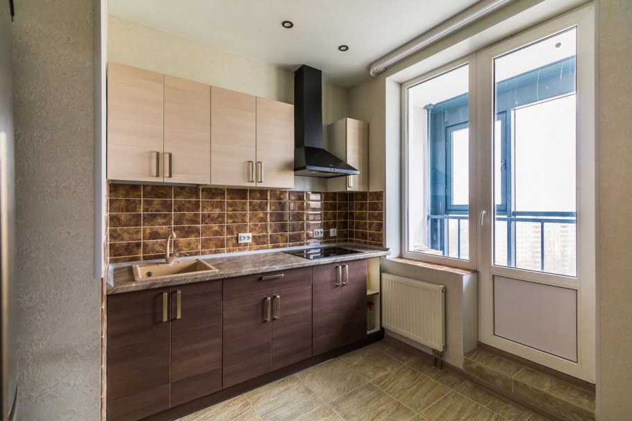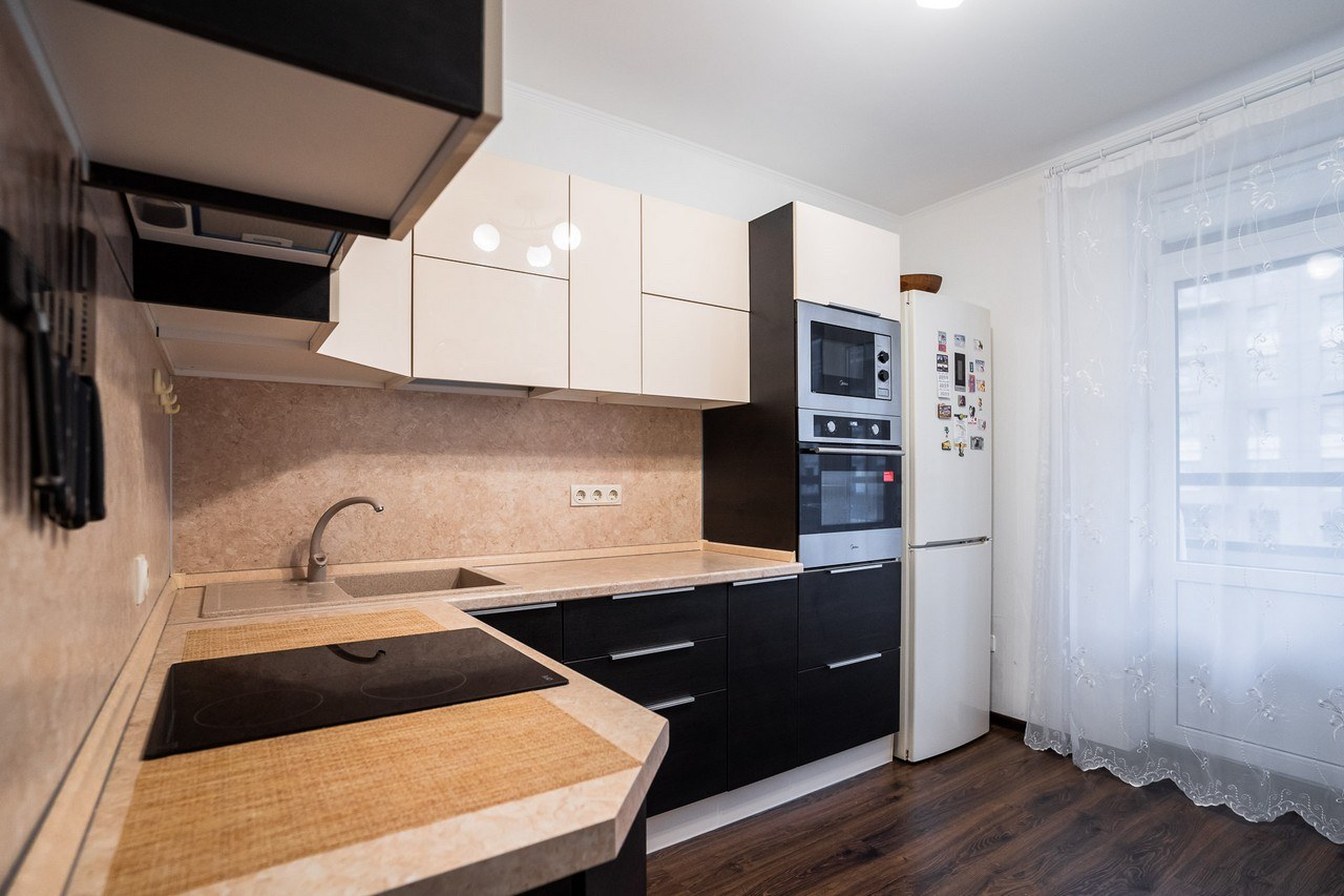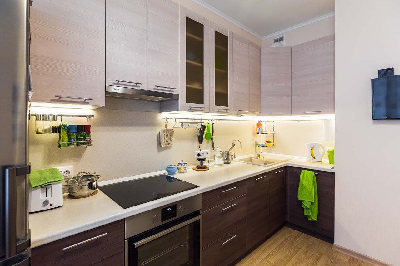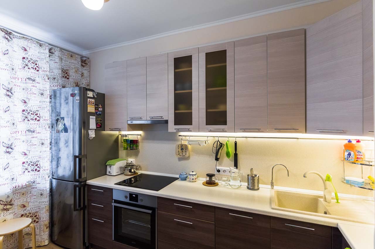Комбинированный кухонный гарнитур светлый верх темный низ