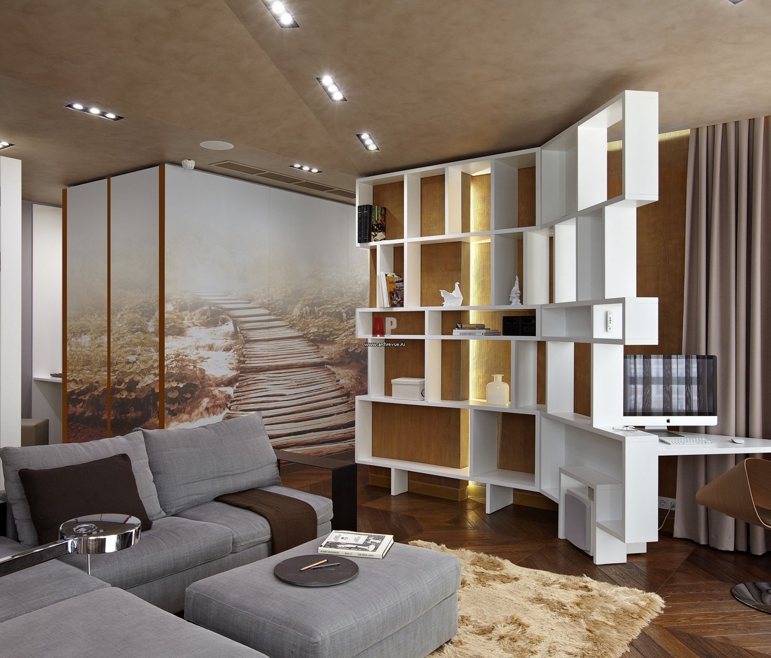Стеллаж-перегородка в интерьере