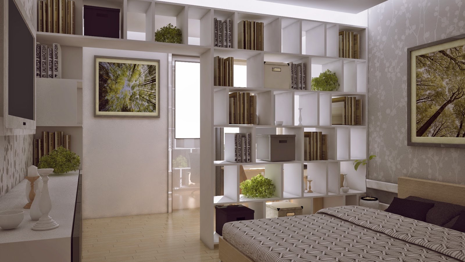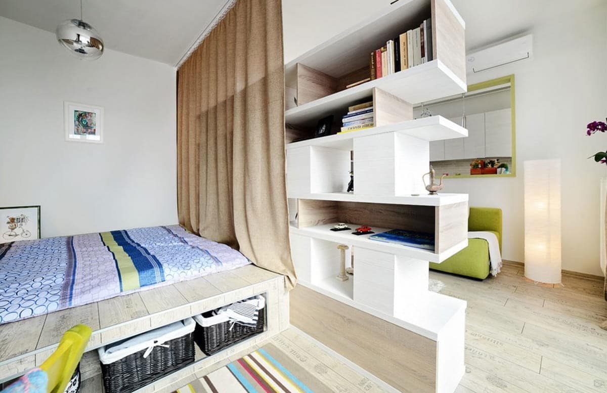 Спальня гостиная зонирование икеа стеллаж