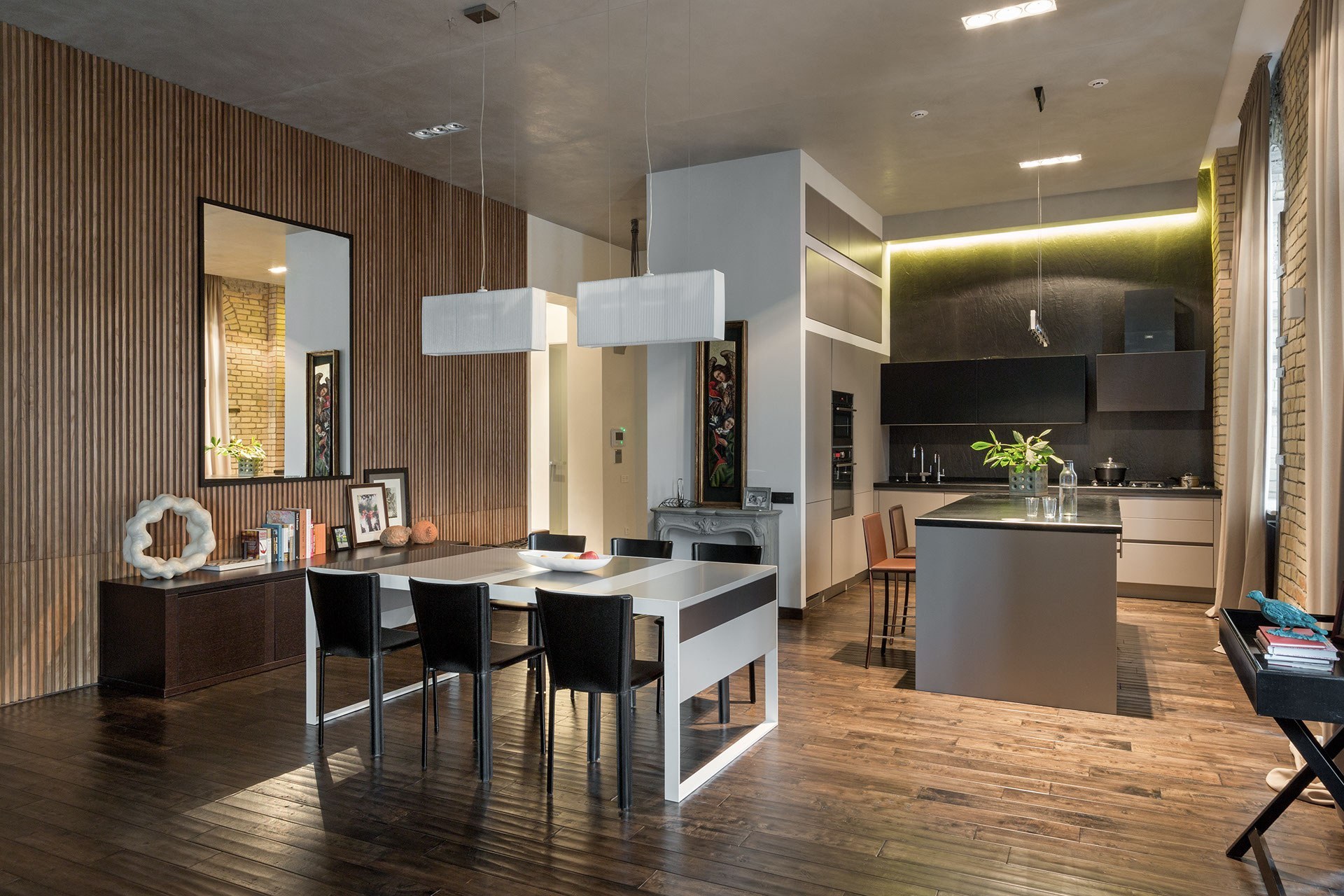 Зонирование светом в кухне гостиной