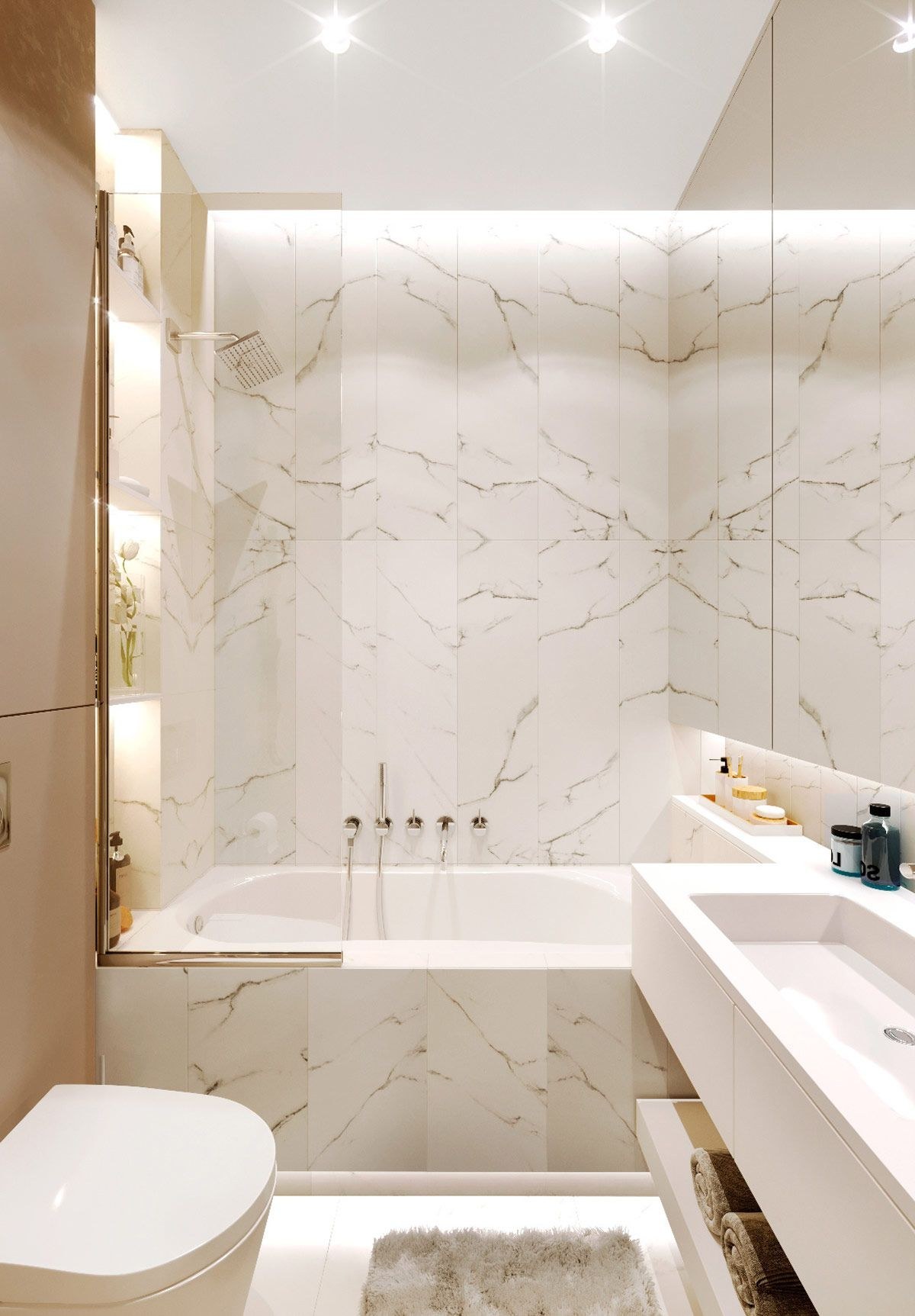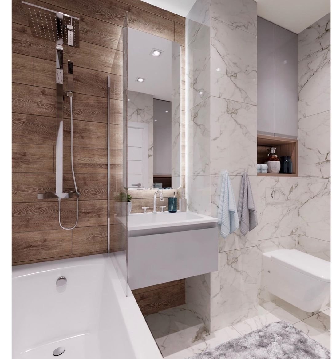 Плитка мрамор в маленькой ванной