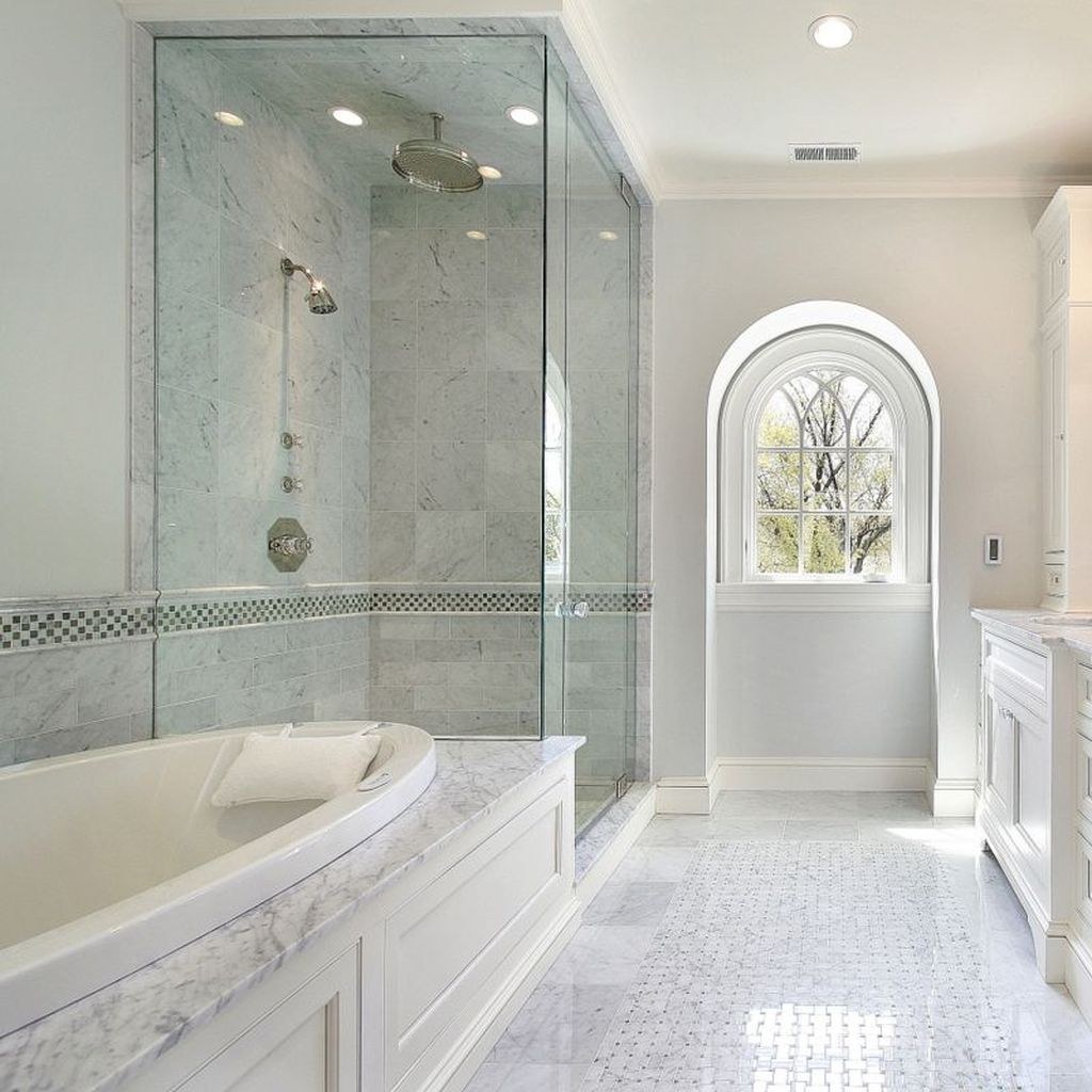 Белая мраморная плитка в ванной комнате