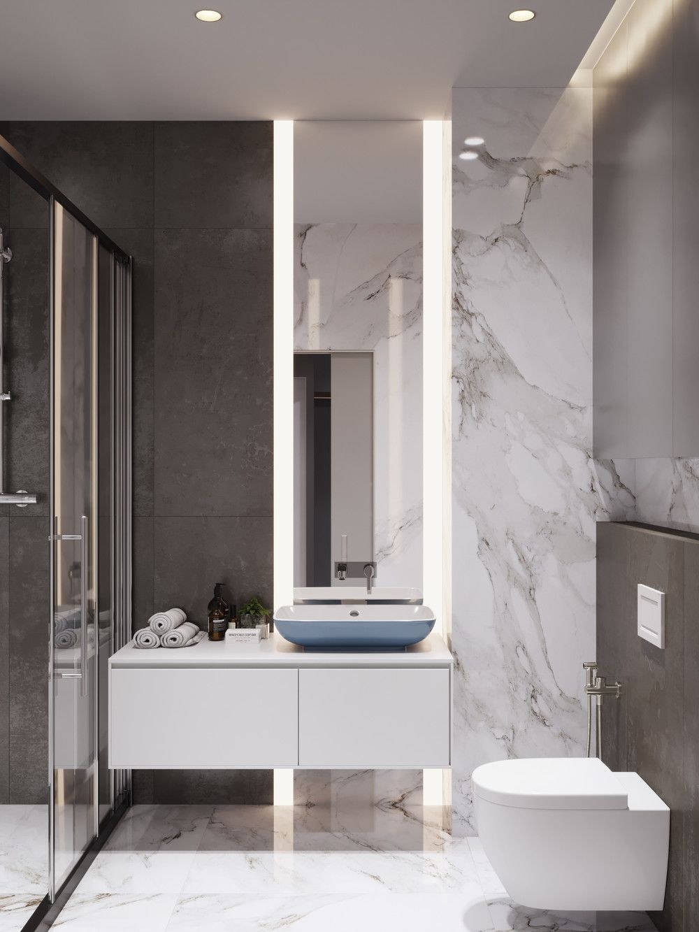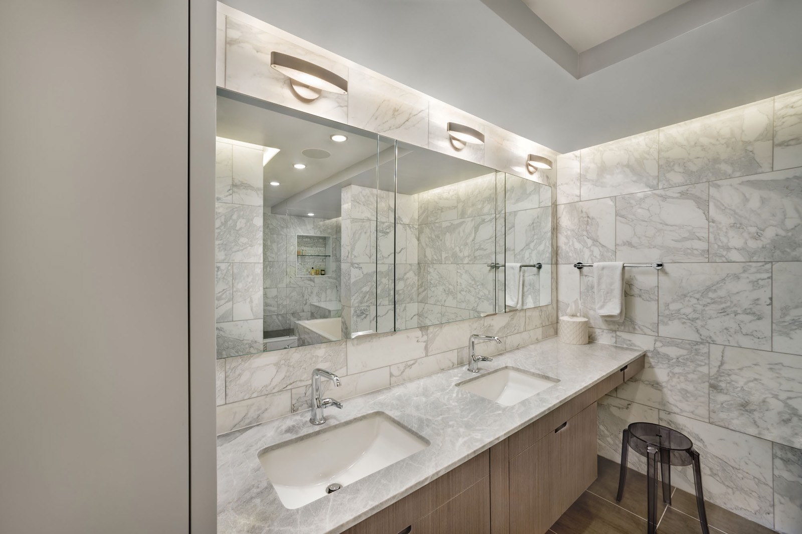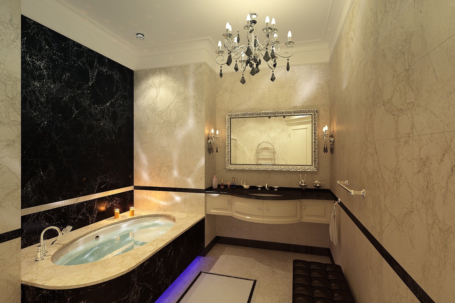 Мрамор с подсветкой в ванной