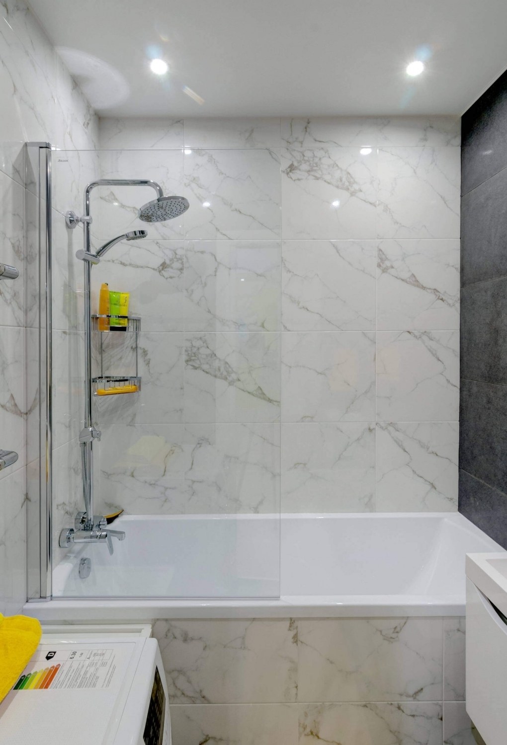 Ванная с плиткой под мрамор