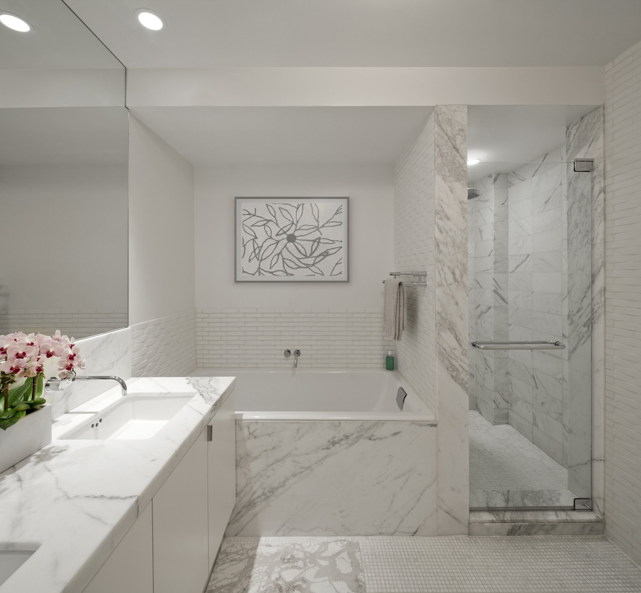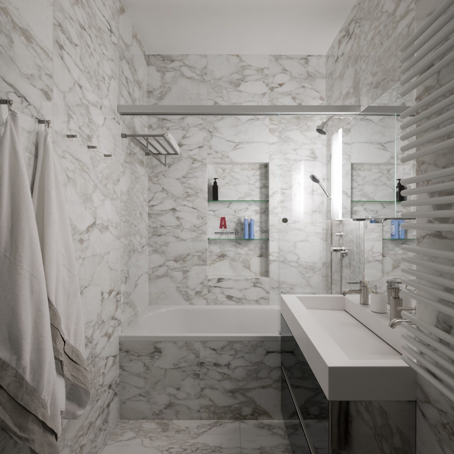 Белая мраморная плитка в ванной