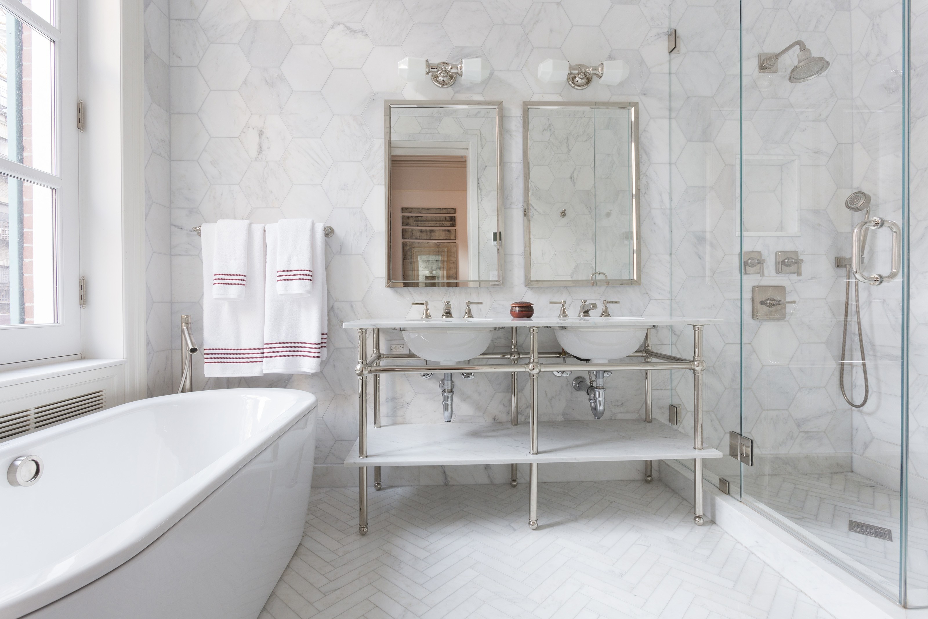 Ванная с мраморной плиткой