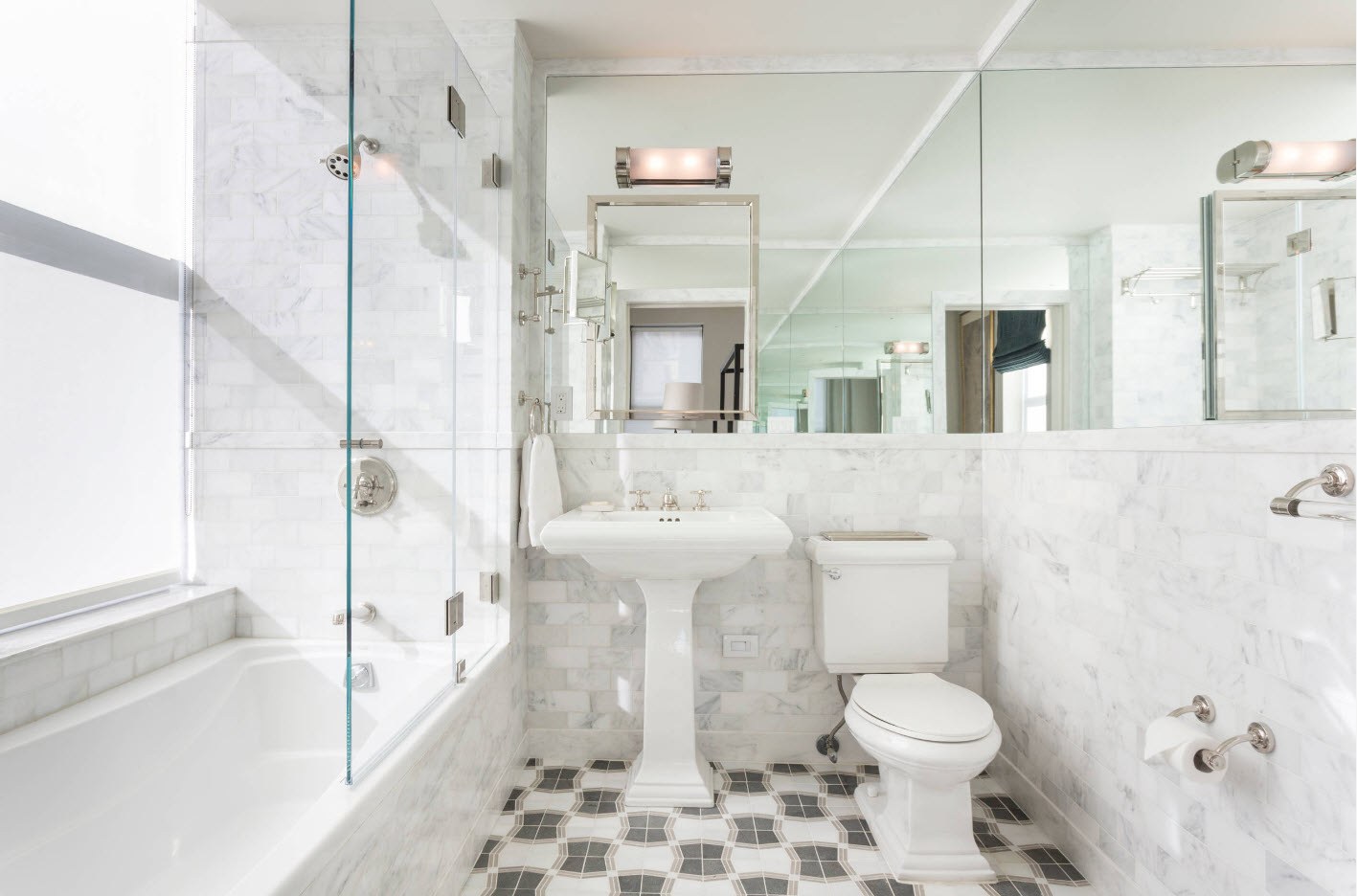 Мраморная плитка в маленькой ванной