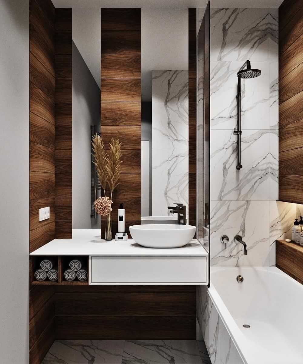 Ванная мрамор и дерево