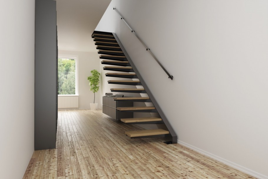 Лестница на второй этаж на косоурах одномаршевая