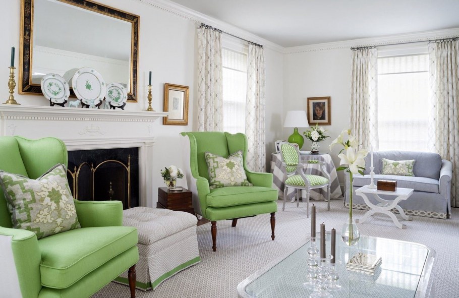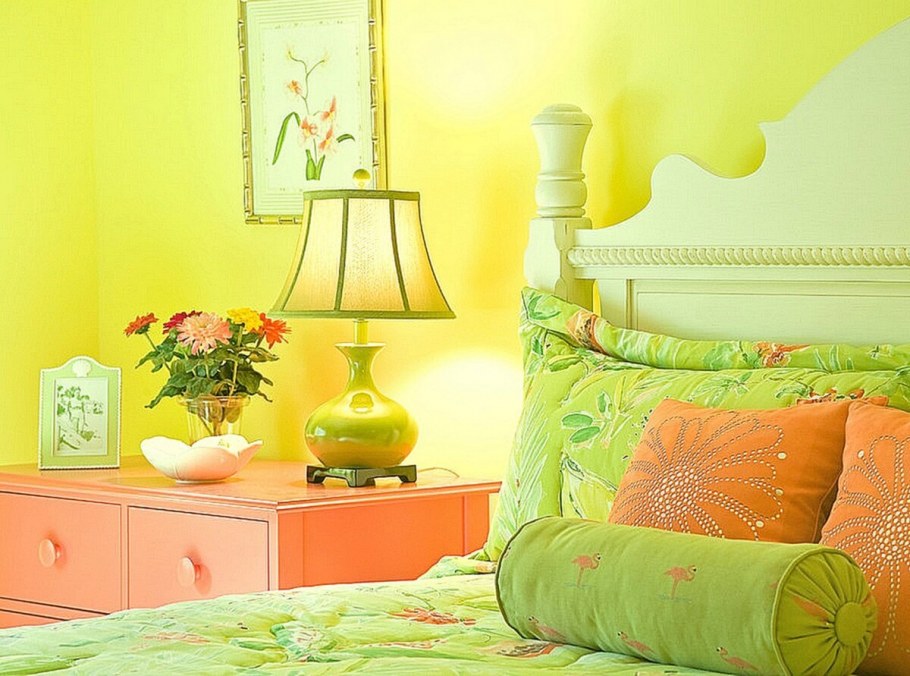 Сочетание цветов зеленые салатовый жалюзи и персиковые стены