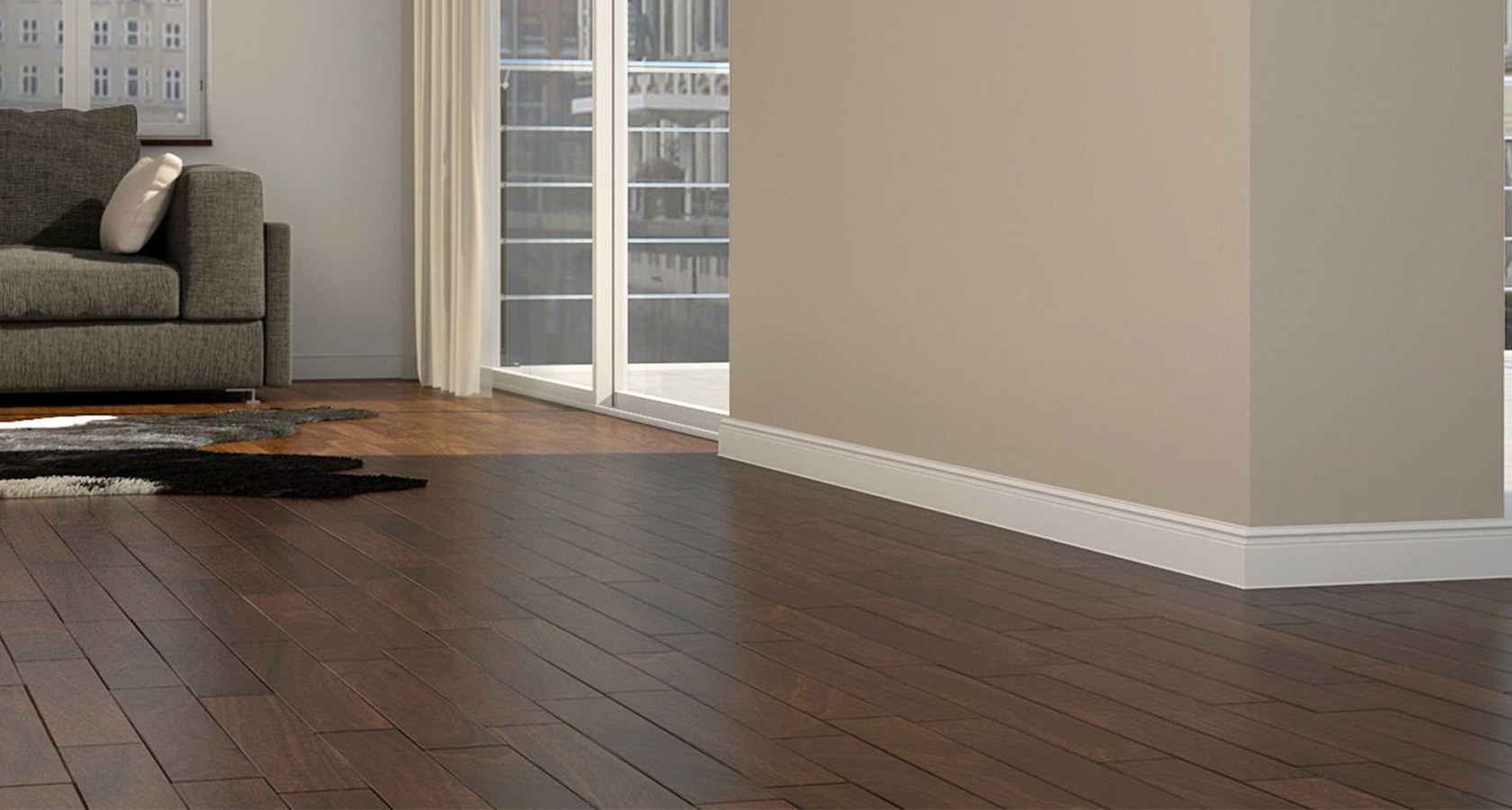 Светлый ламинат и темный плинтус в интерьере (77 фото)