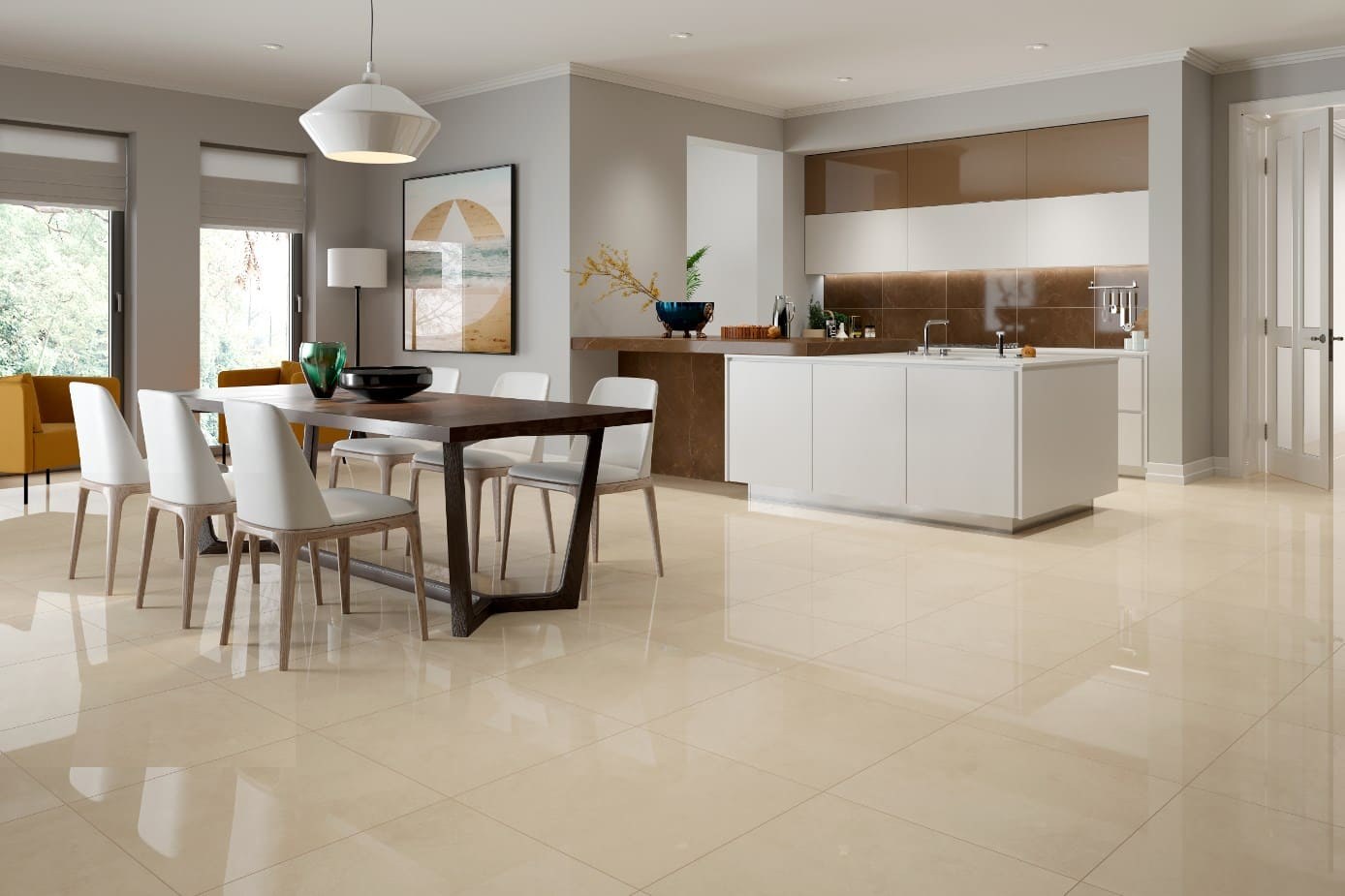 Керамогранит молочного цвета в интерьере (68 фото)