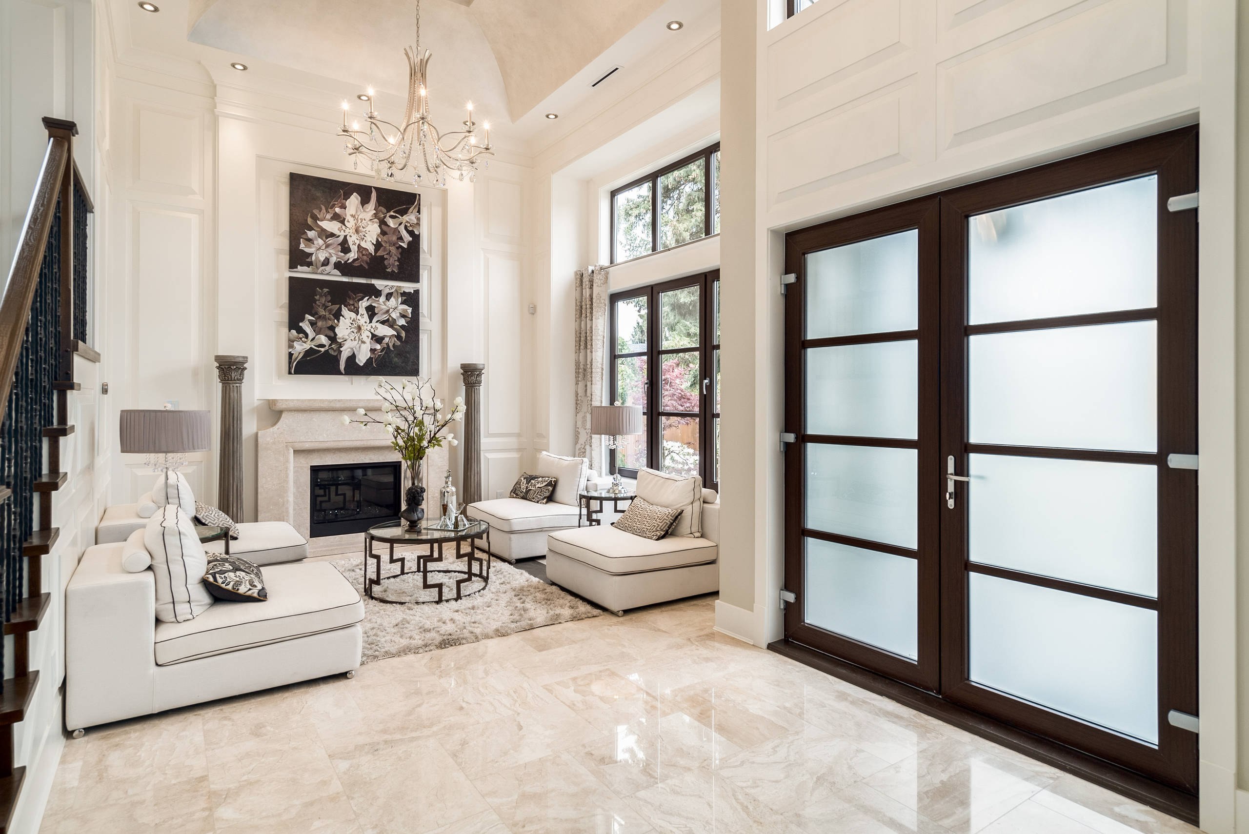 Мраморная плитка в интерьере гостиной