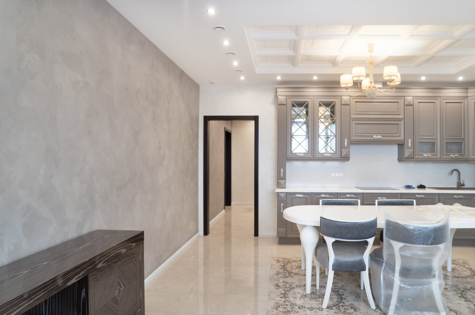 Декоративная штукатурка шелк в интерьере кухни (77 фото)