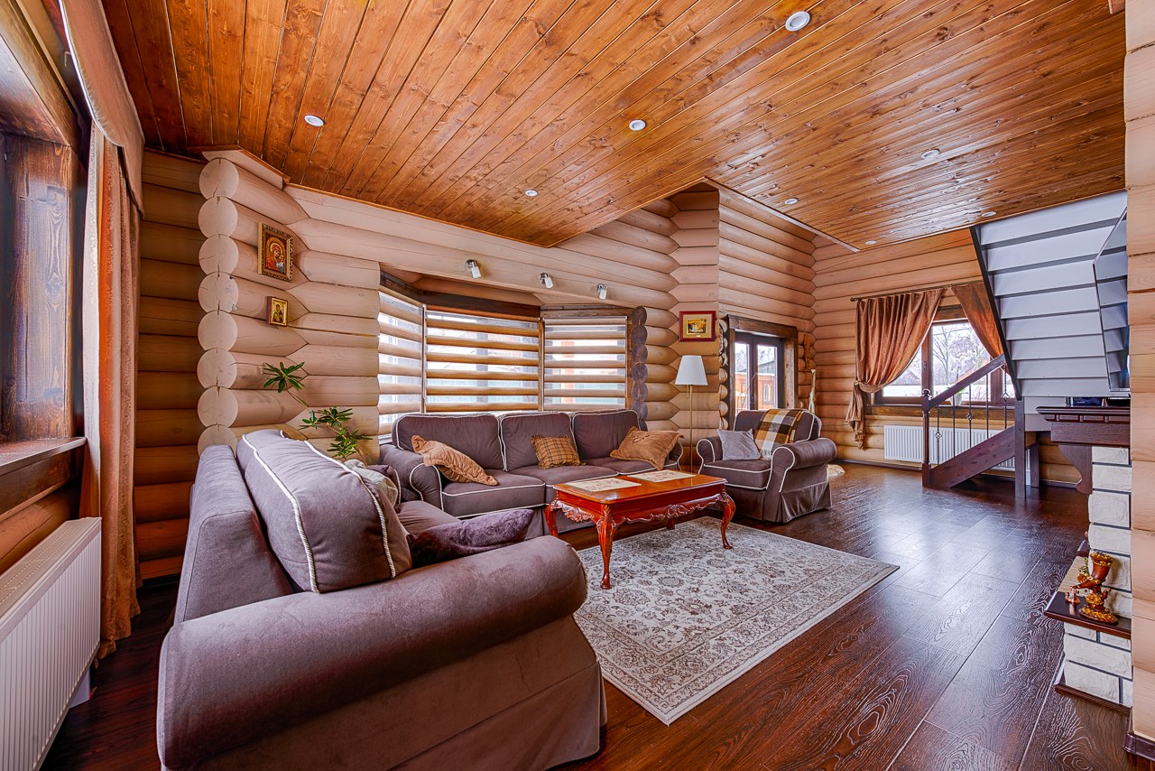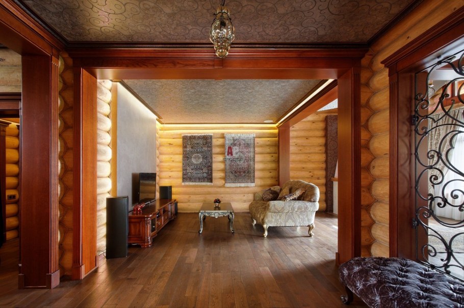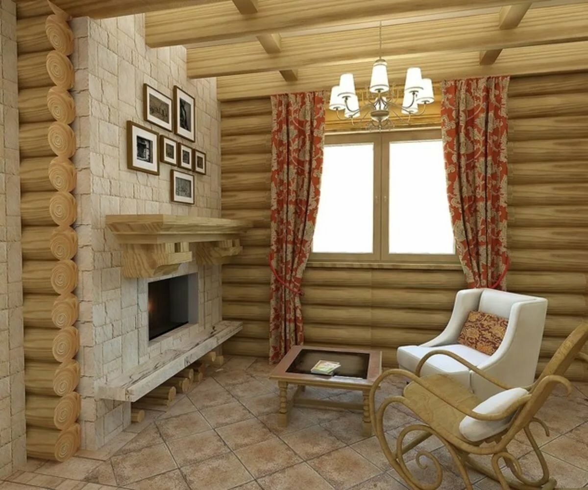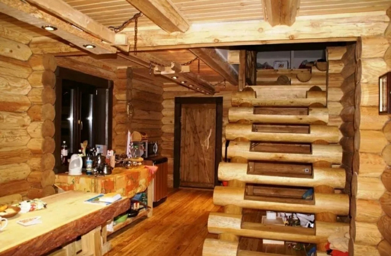Интерьер дом из оцилиндрованного бревна внутри дома