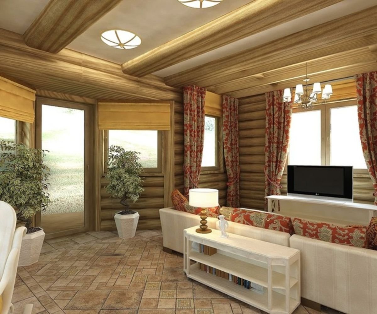 Внутренняя отделка деревянного дома из бревна внутри (81 фото)