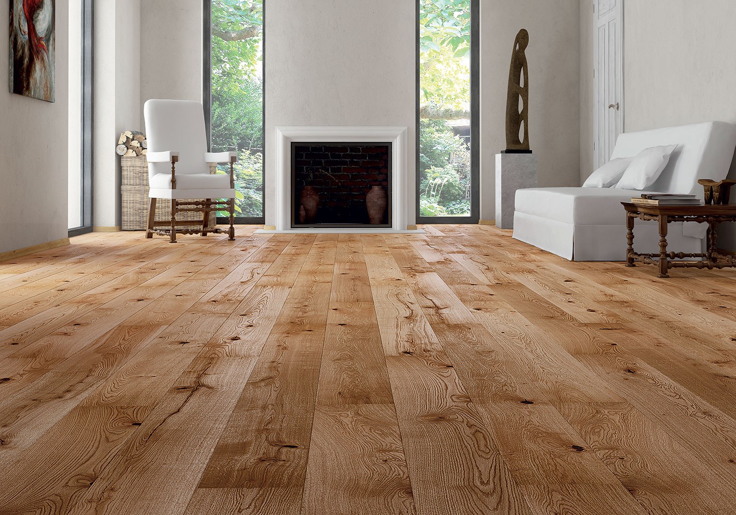 Пол беленый дуб в интерьере