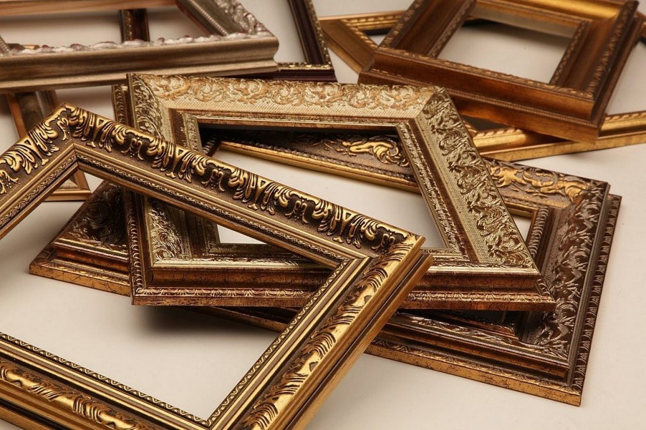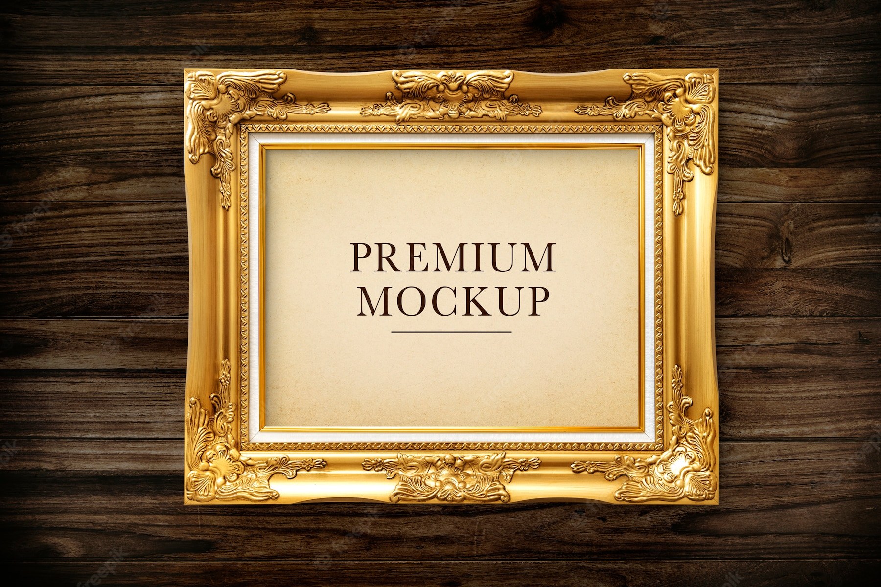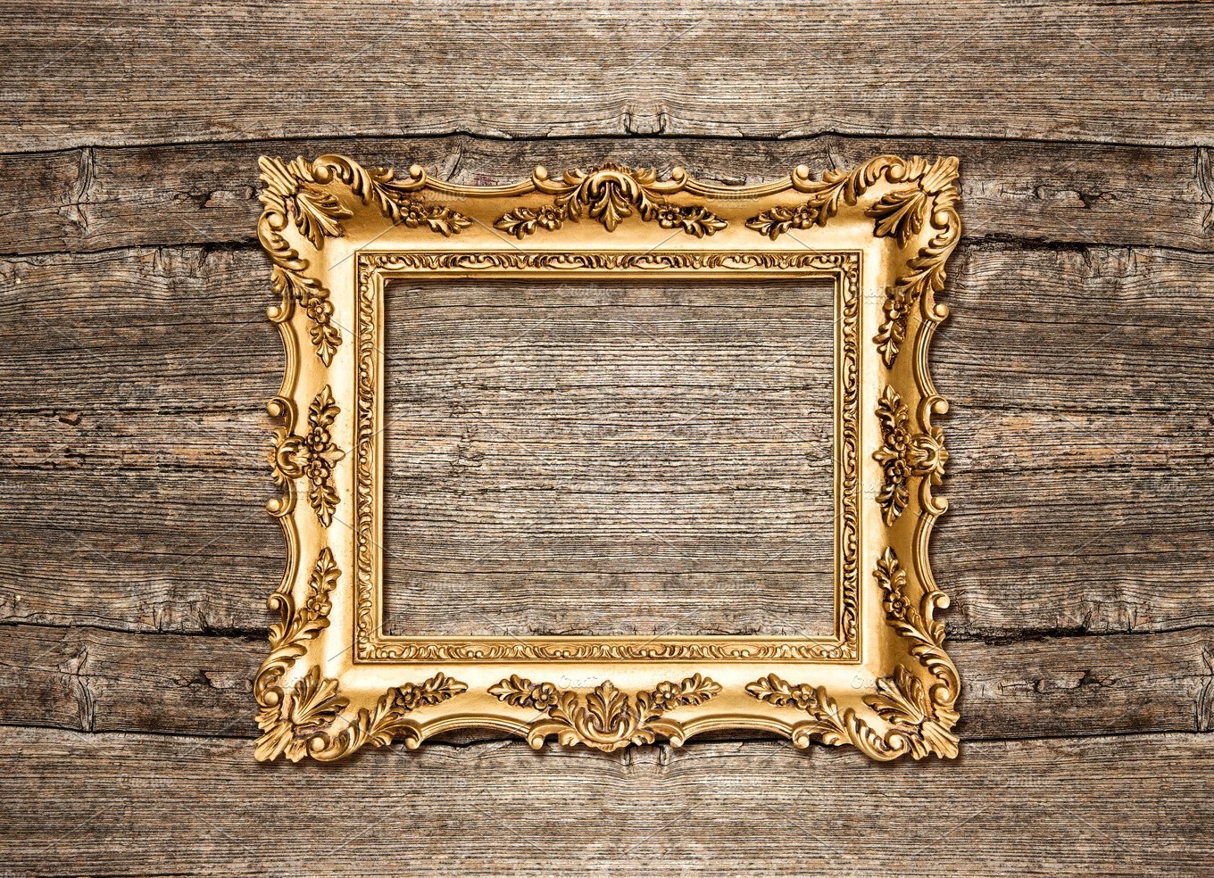 Золотая рамка с деревянной прожилкой в интерьере (51 фото)