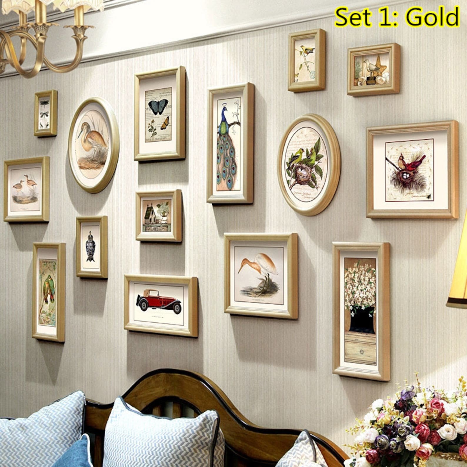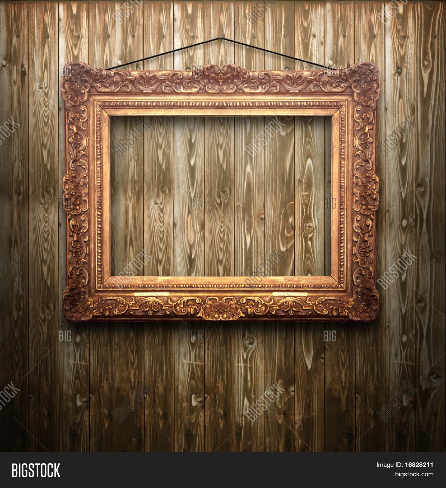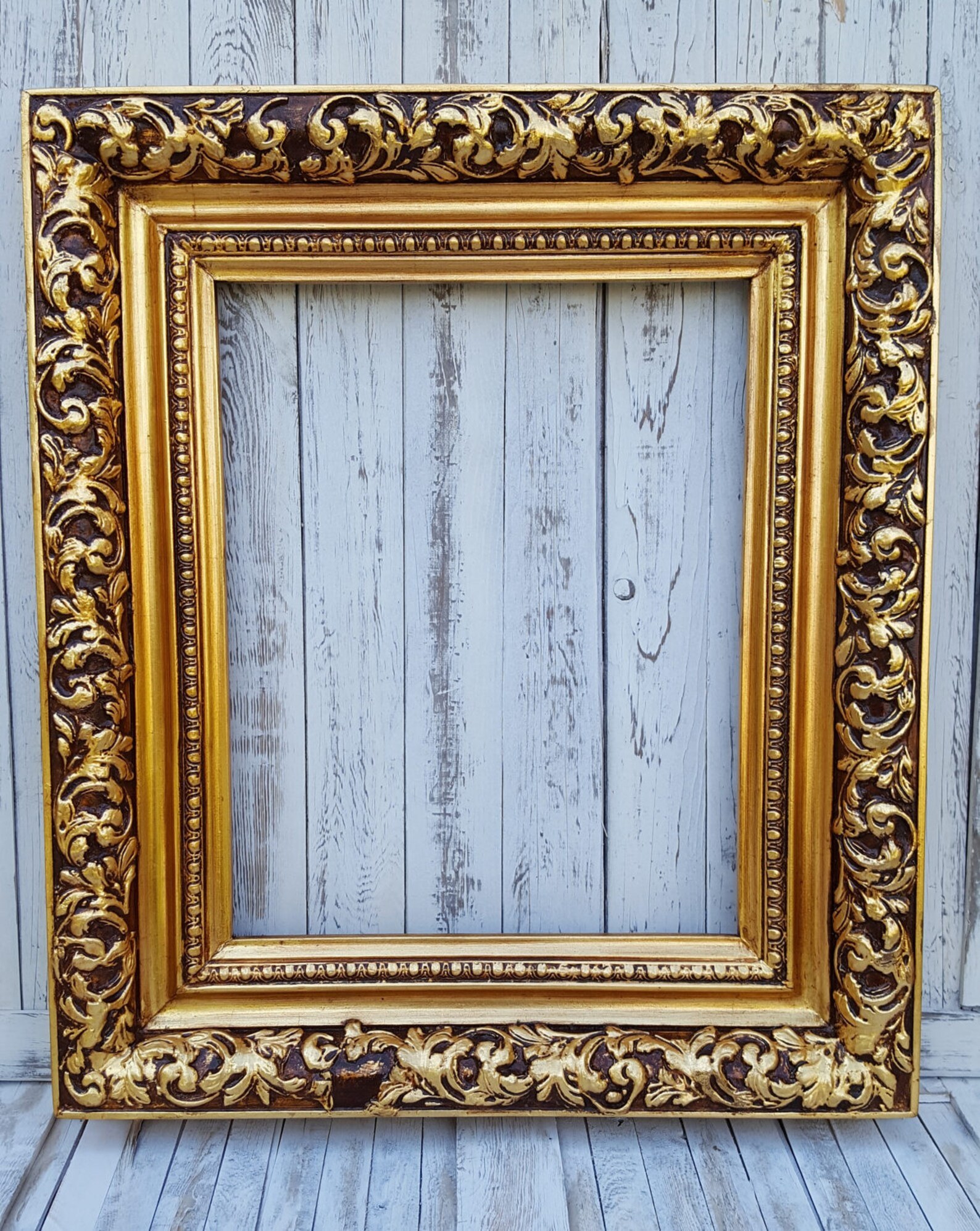 Золотая рамка с деревянной прожилкой в интерьере (51 фото)