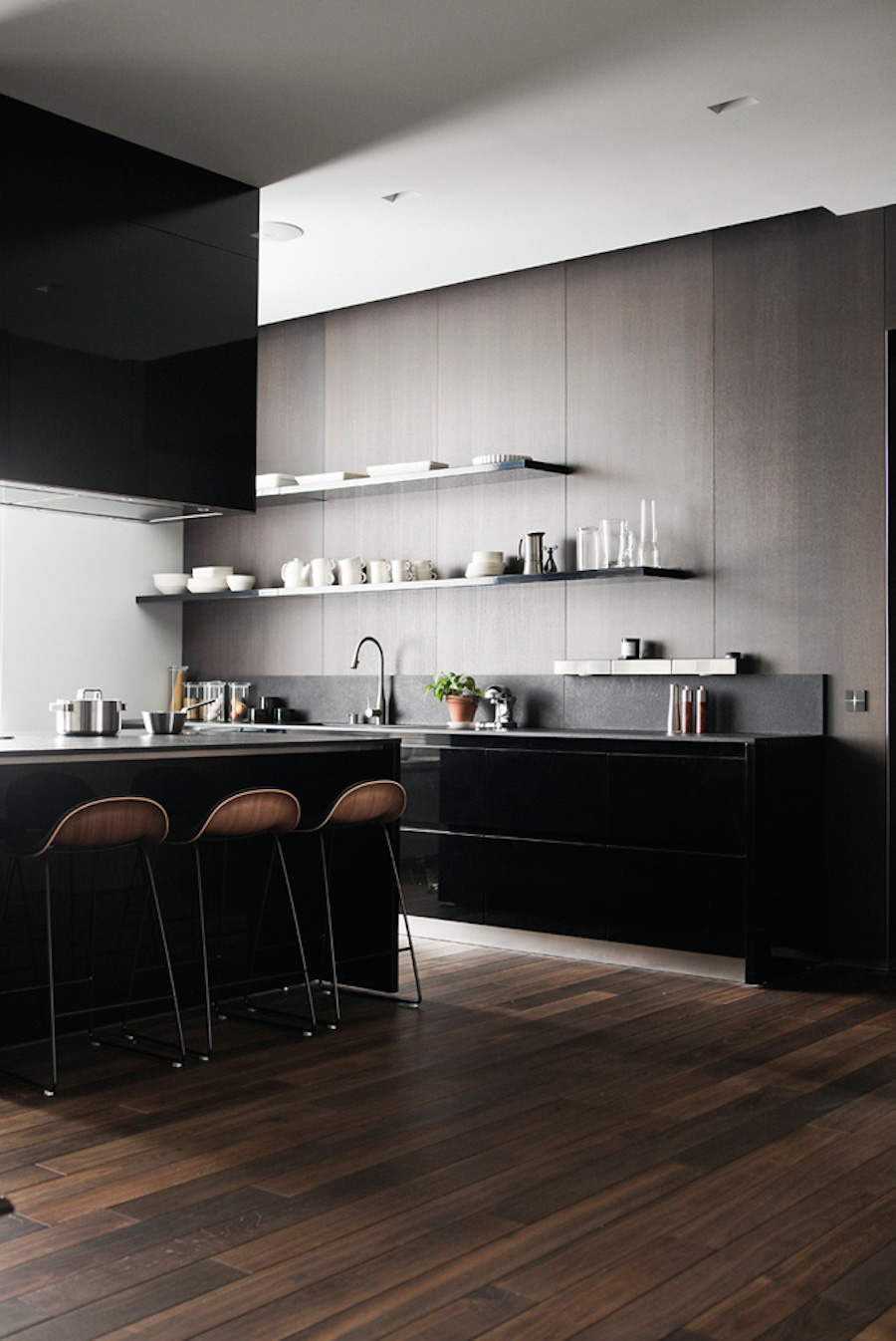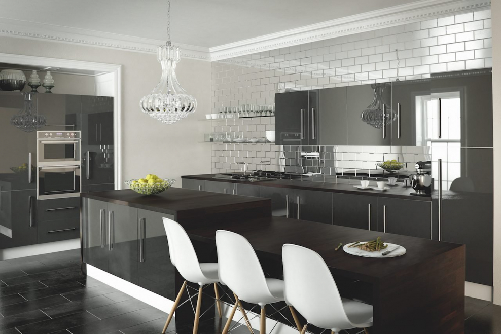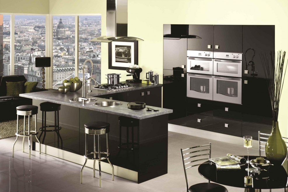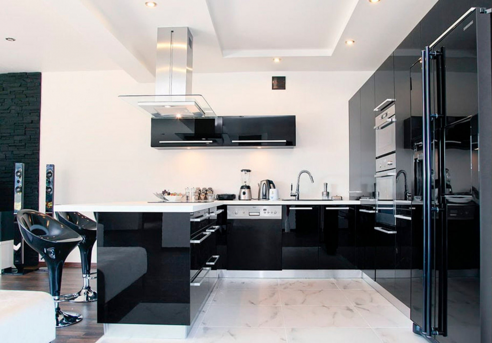 Черная глянцевая кухня в интерьере