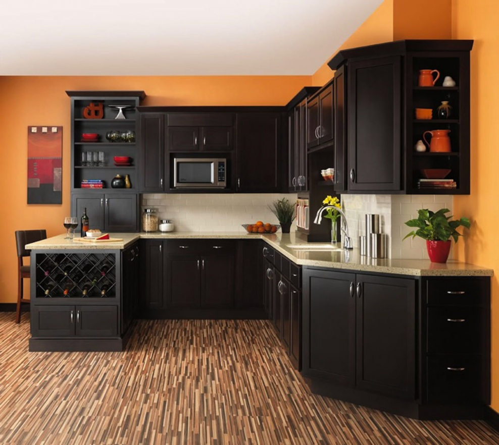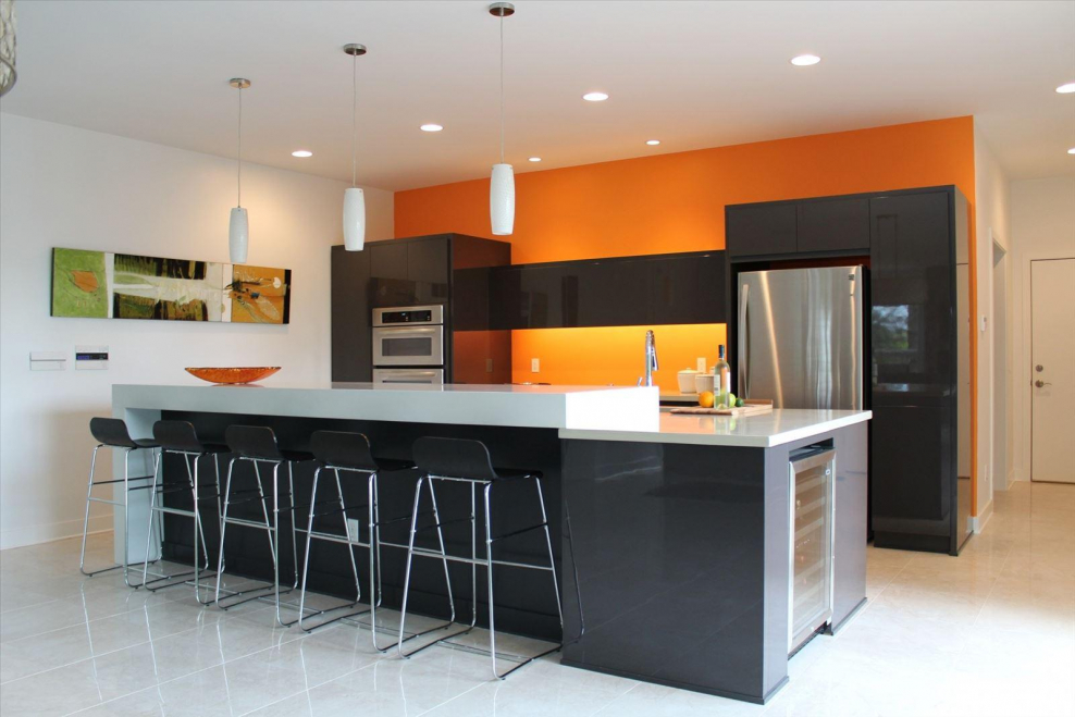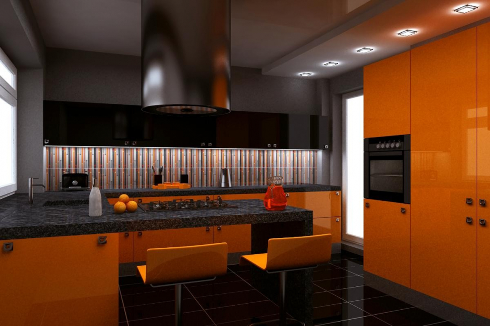 Кухня оранжевая с черным в интерьере