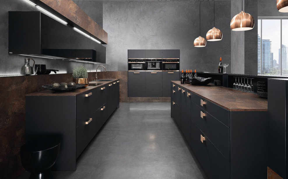 Кухня лофт в черном цвете