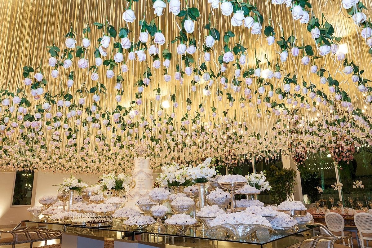 Украшение потолка искусственными цветами