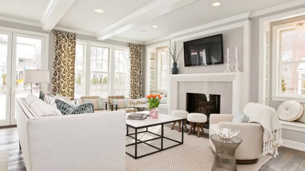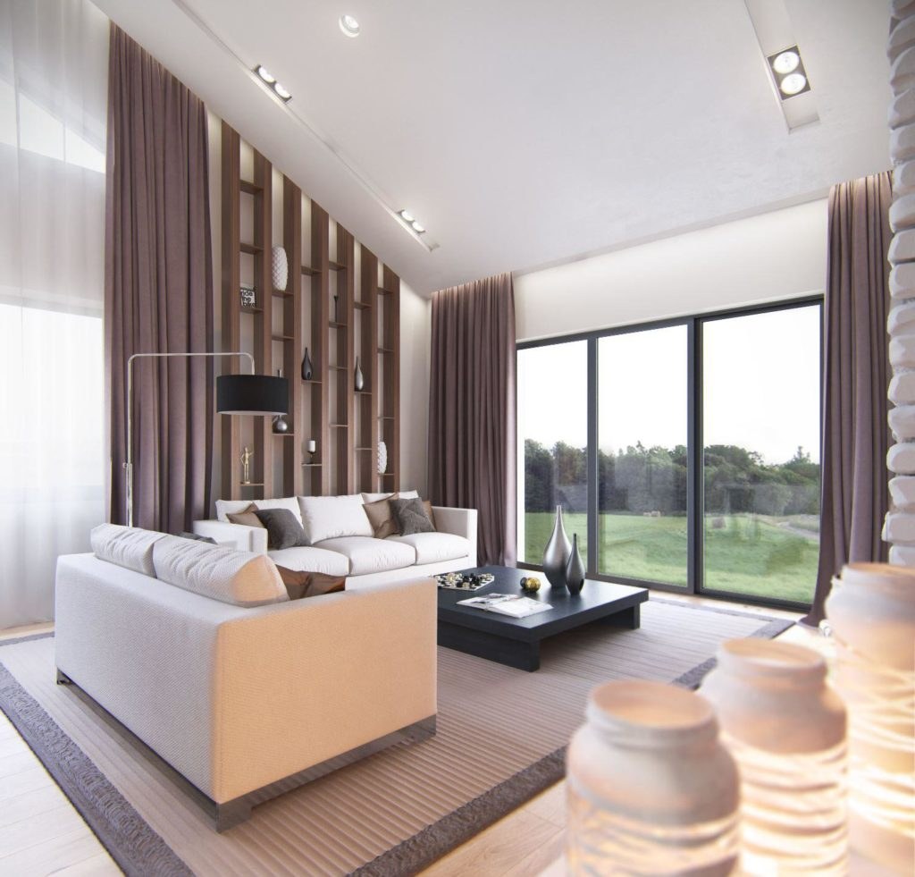 Гостиная в современном стиле в светлых тонах в загородном доме (78 фото)