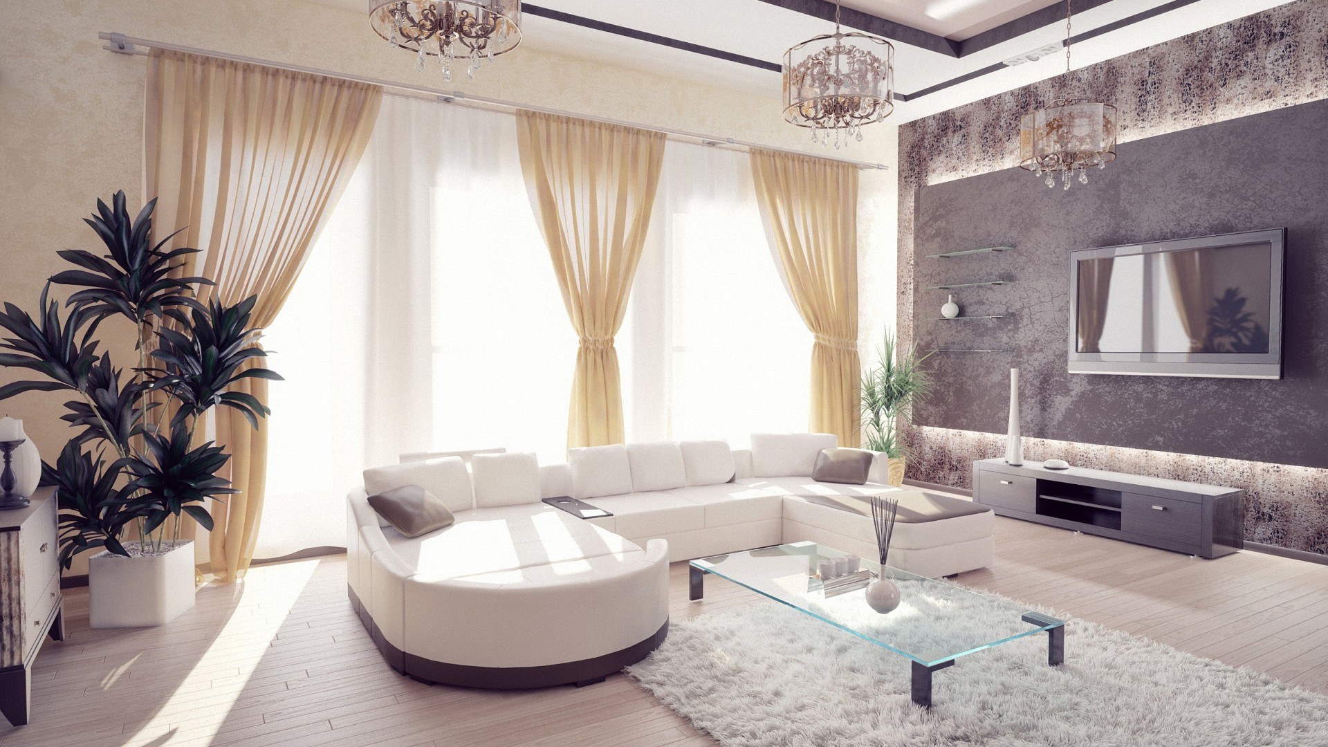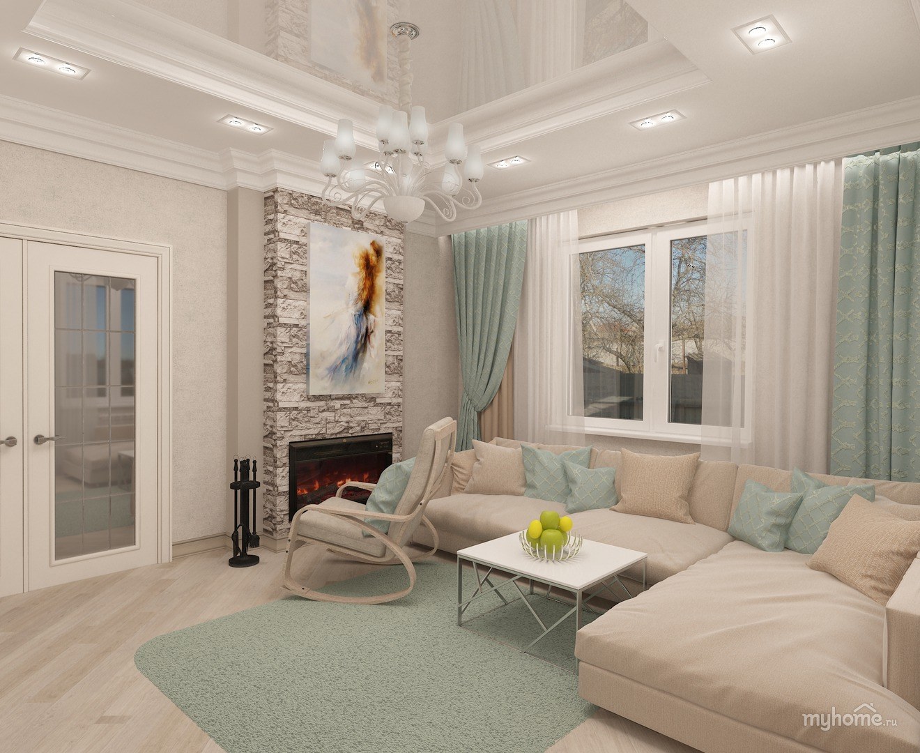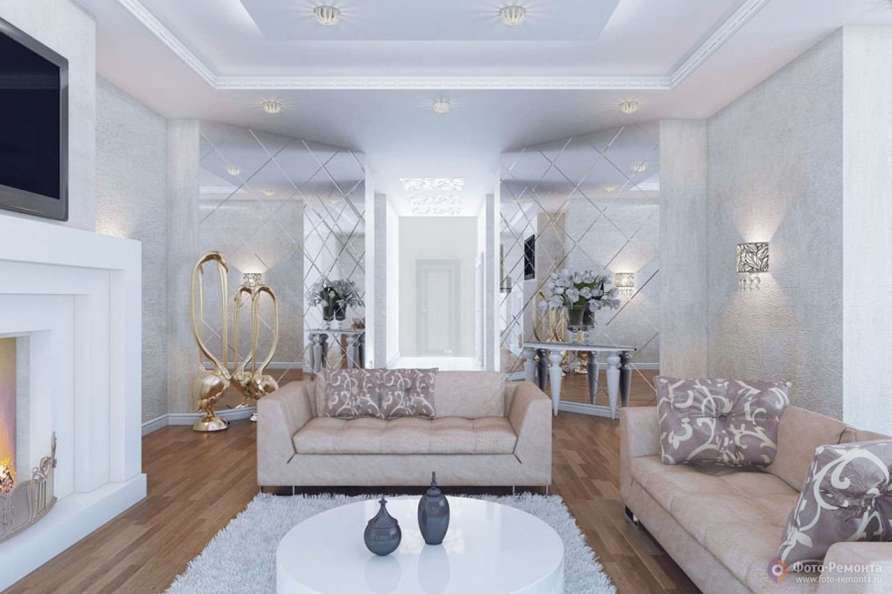 Отделка гостиной в светлых тонах