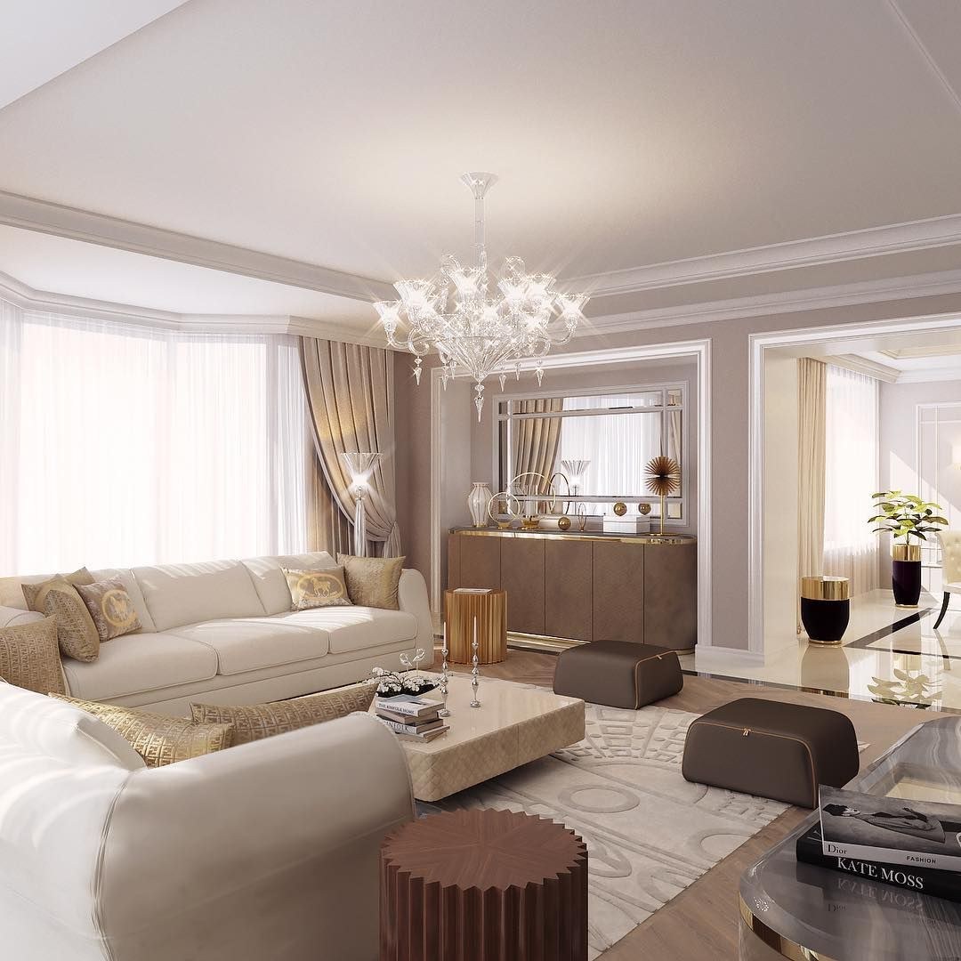 Гостиная в стиле арт деко в светлых тонах