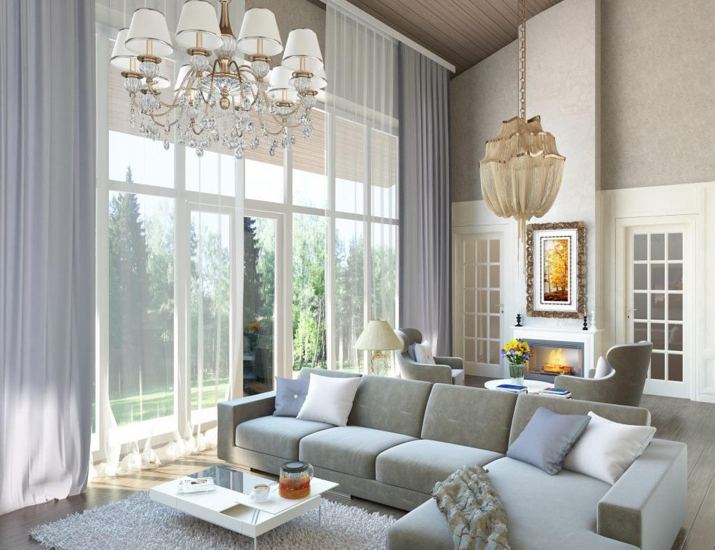 Шторы в гостиную в стиле загородном доме
