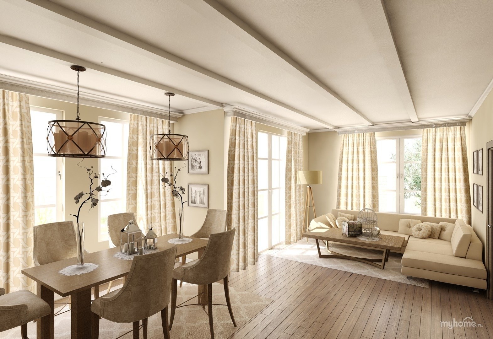Гостиная столовая в светлых тонах