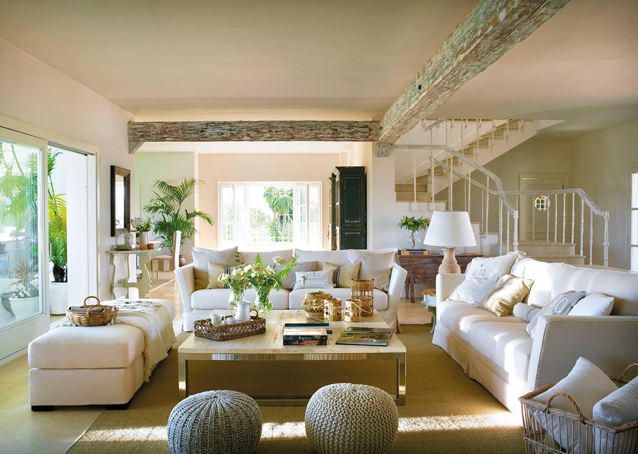 Гостиная в загородном доме в светлых тонах