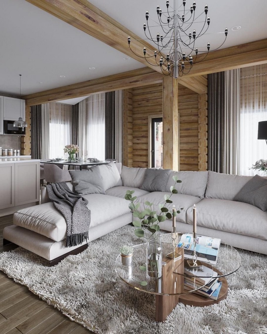 Интерьеры в домах из клееного бруса в скандинавском стиле