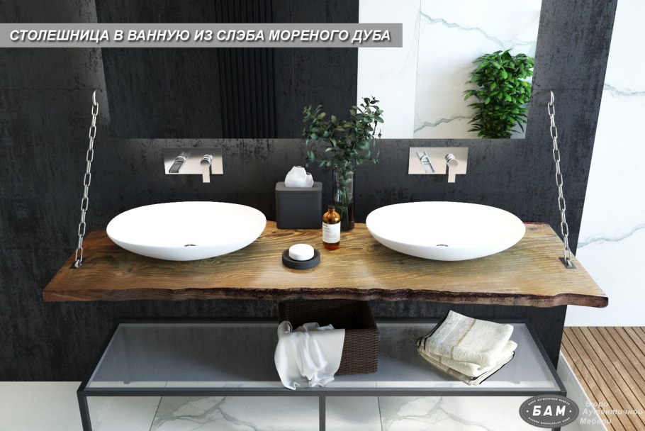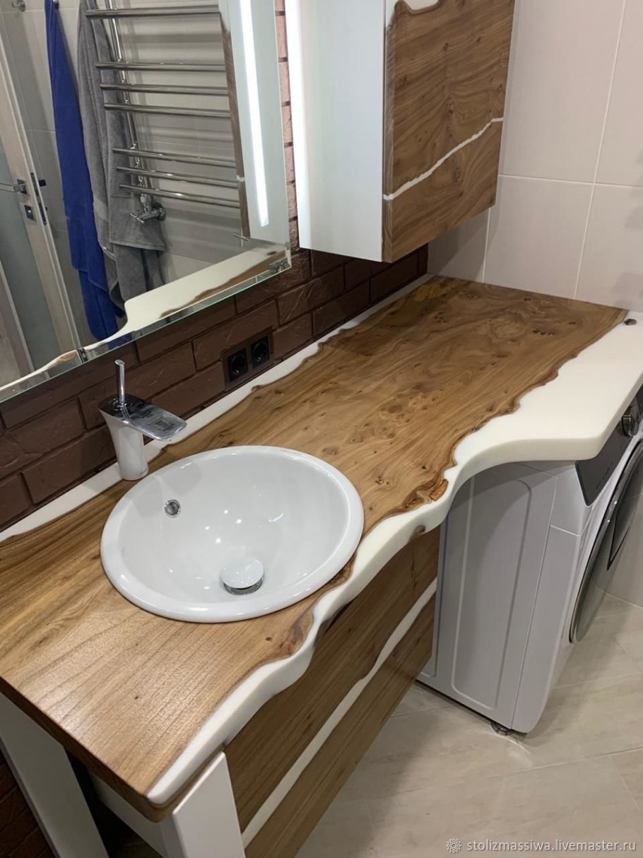 Деревянная столешница в ванную комнату