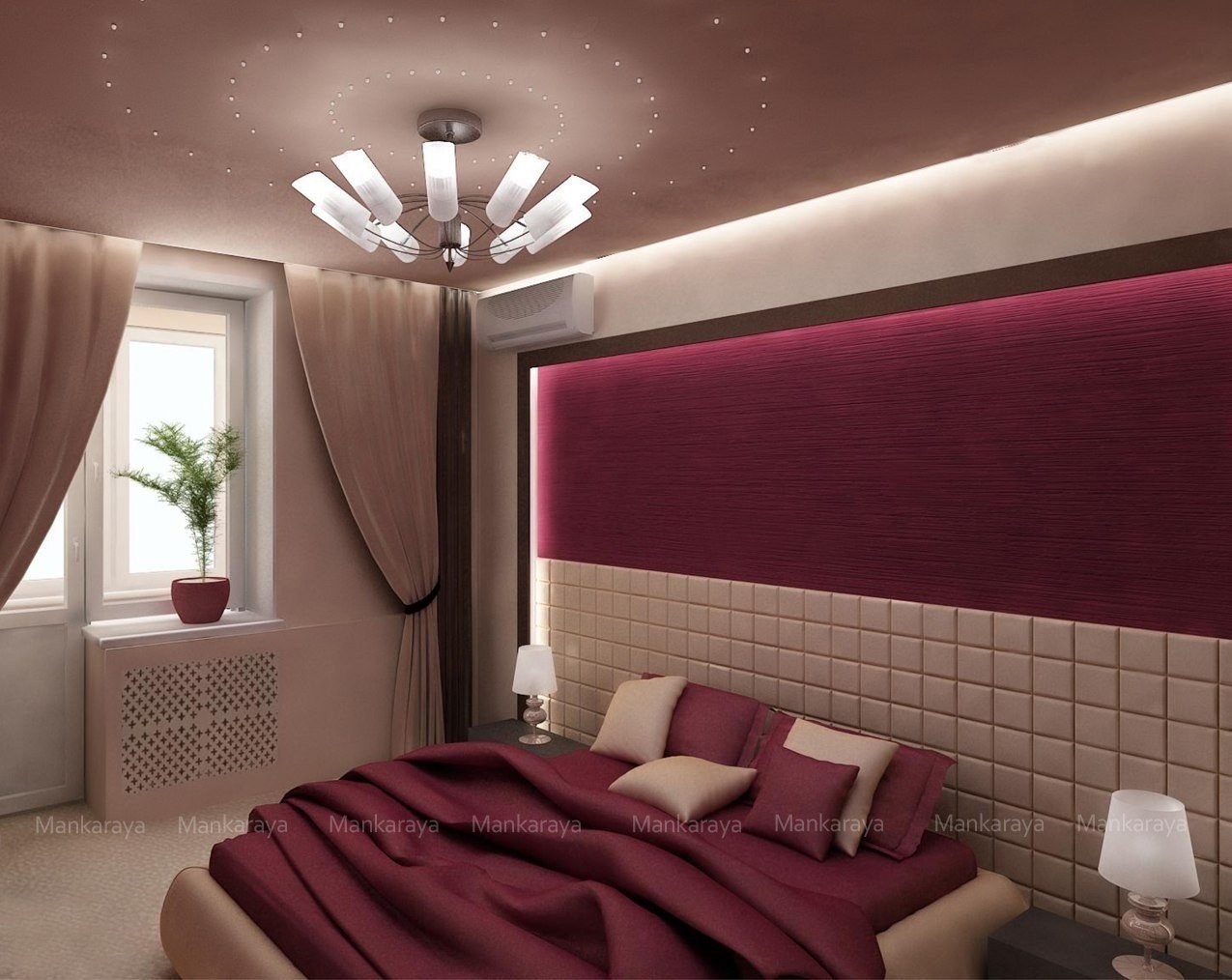 Спальня в бордовых тонах
