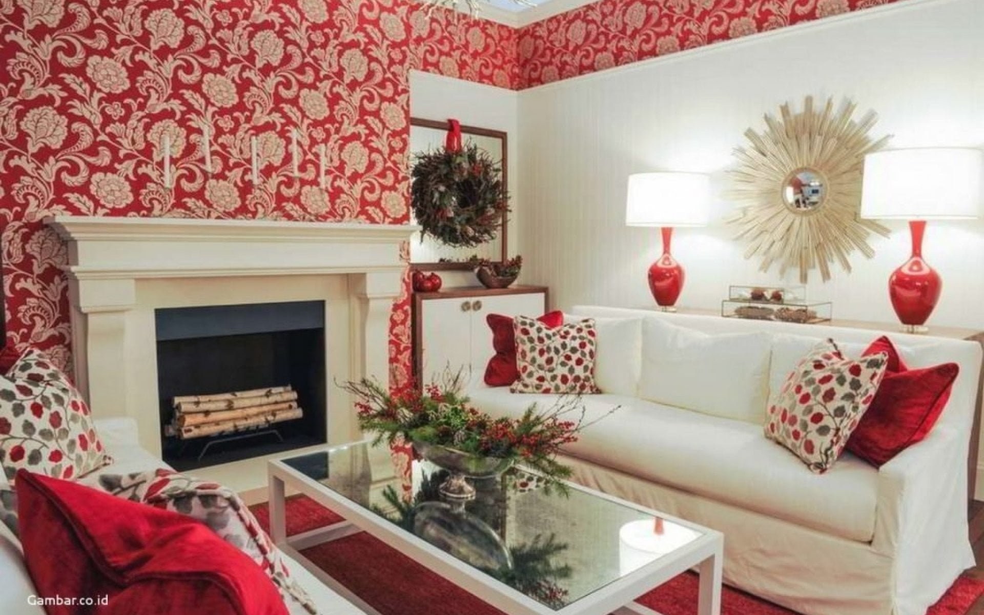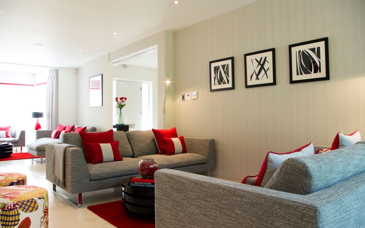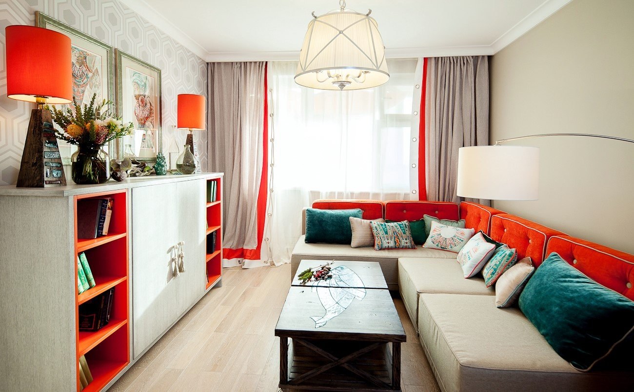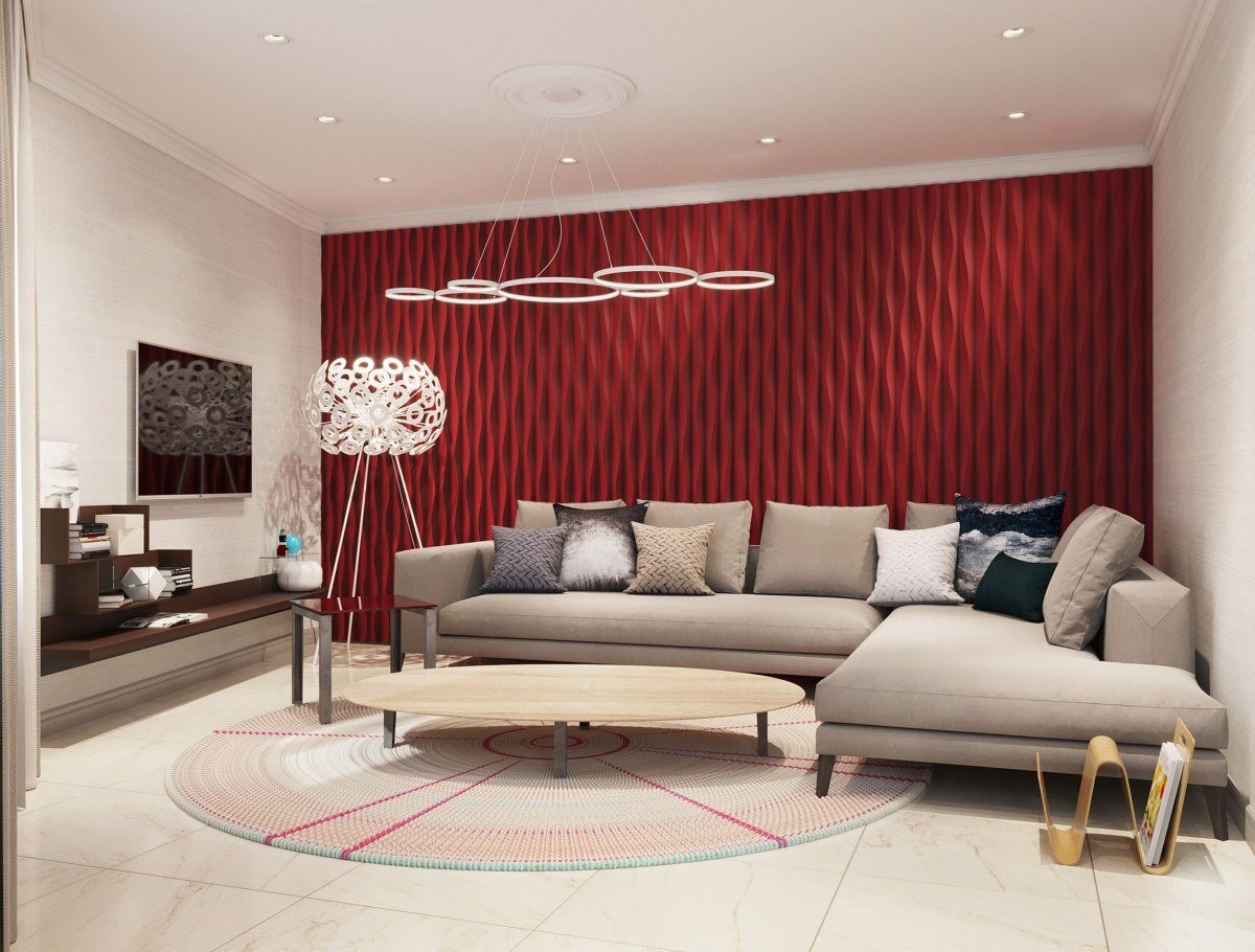Гостиная с красными акцентами