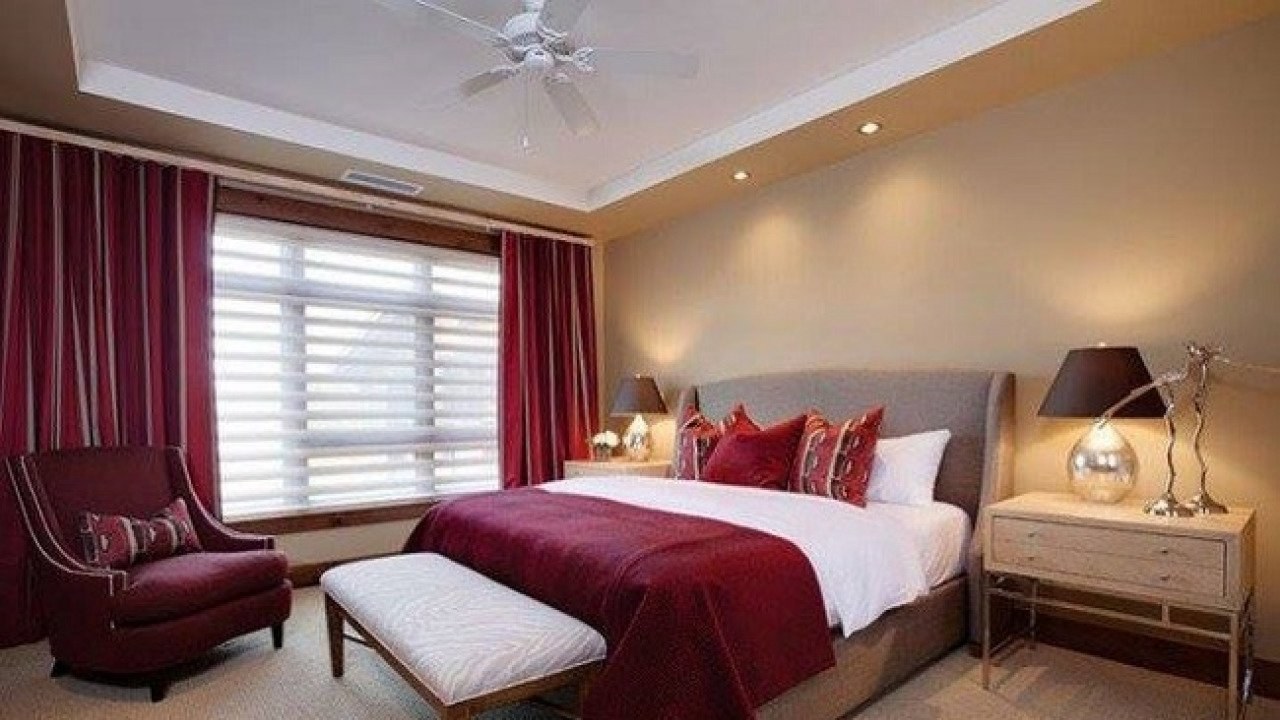 Бежево бордовая спальня