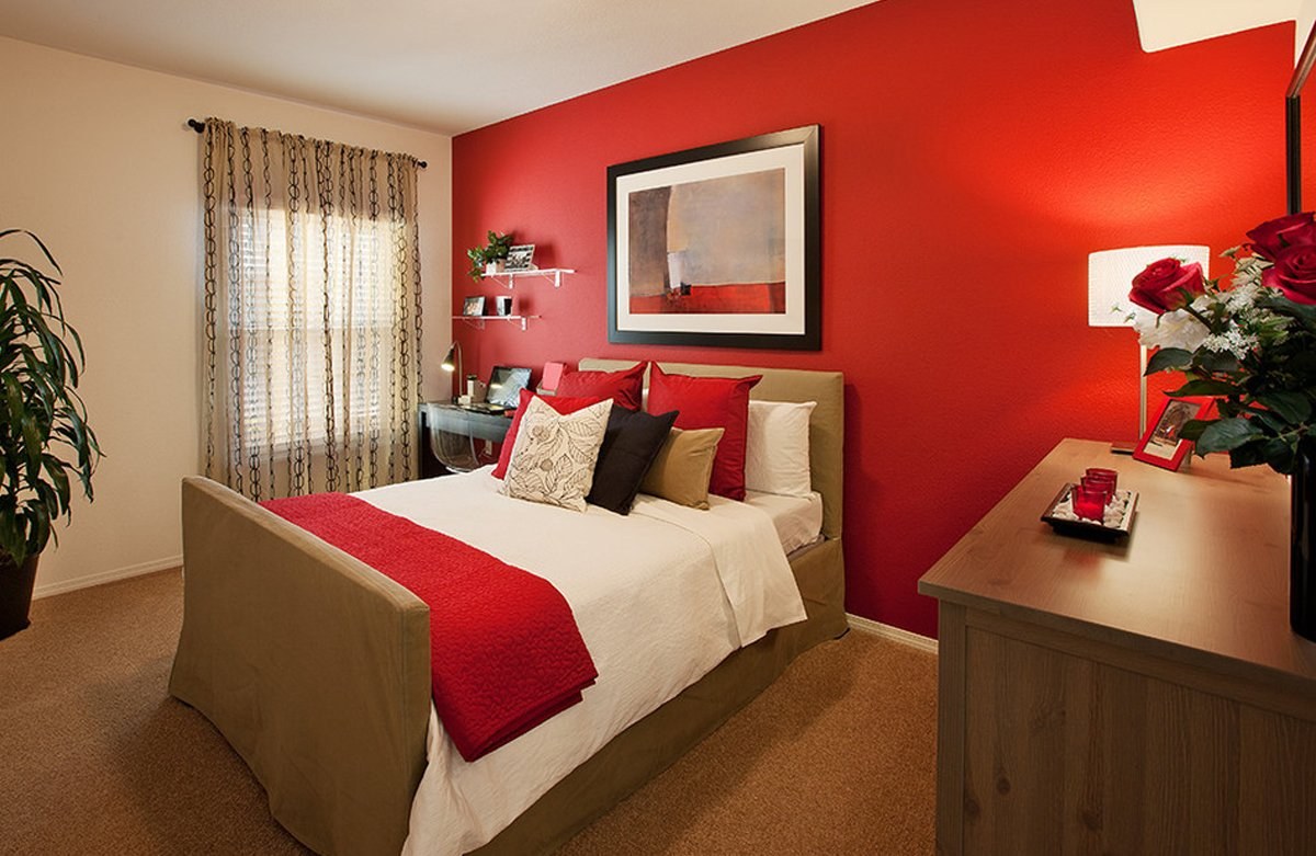 Спальня с красными акцентами