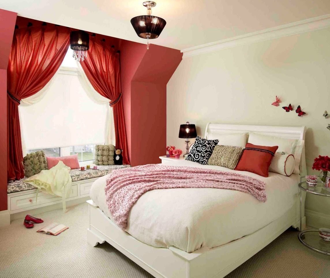 Красные шторы в спальне