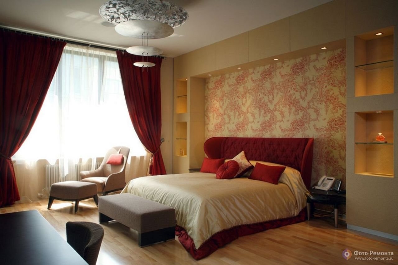 Евроремонт спальни в красных тонах