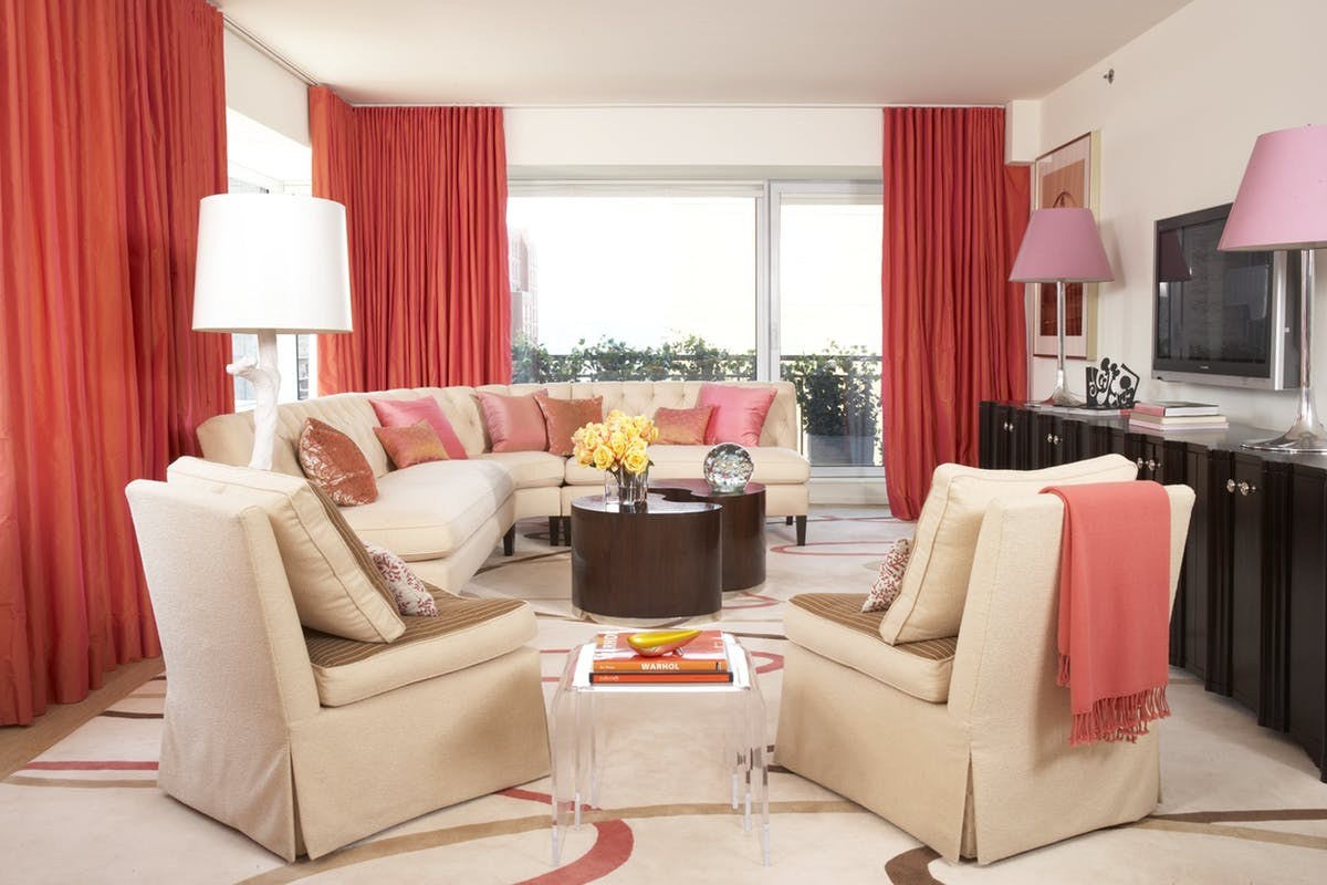 Розовый цвет в интерьере гостиной