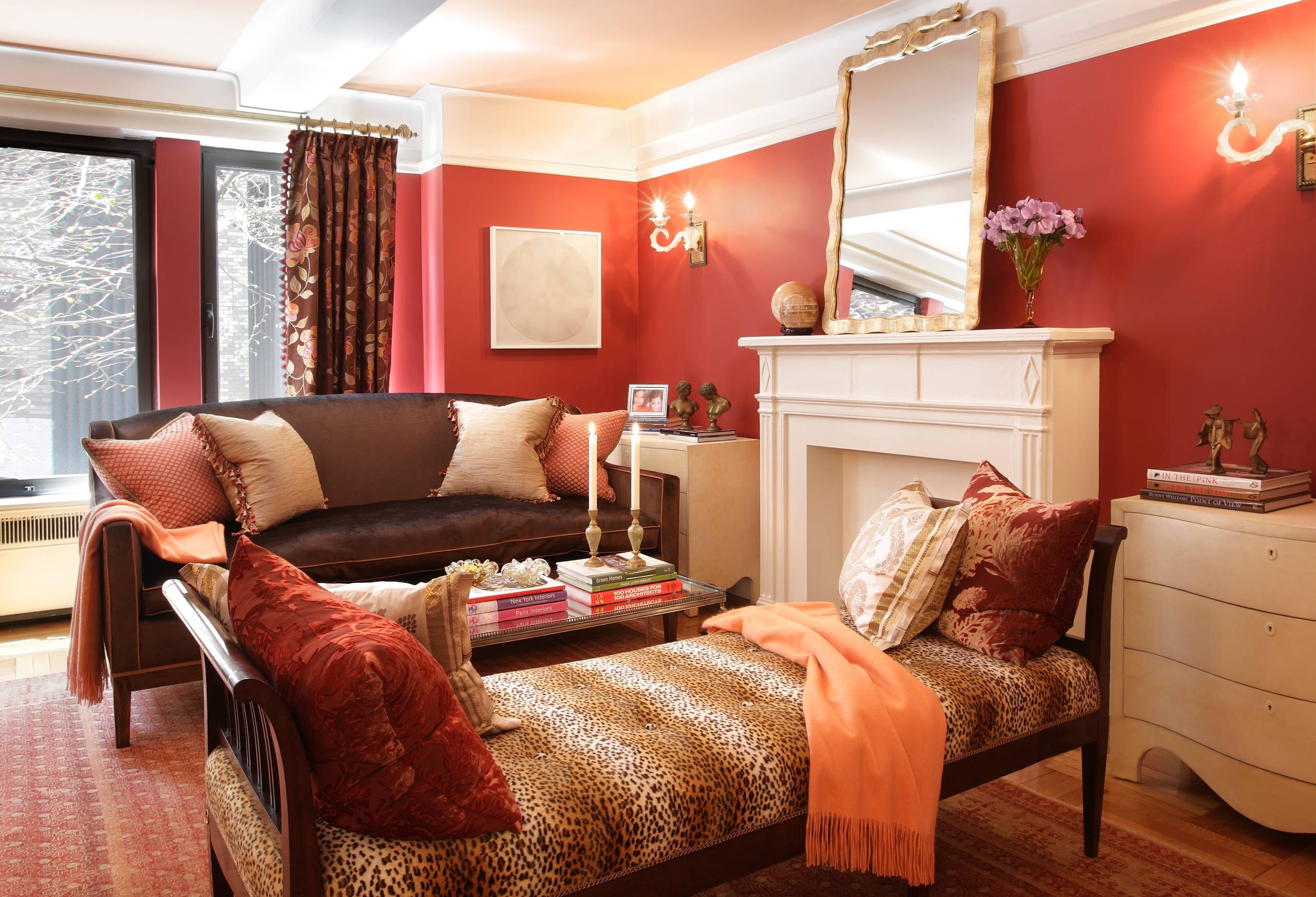 Терракотовые стены в гостиной