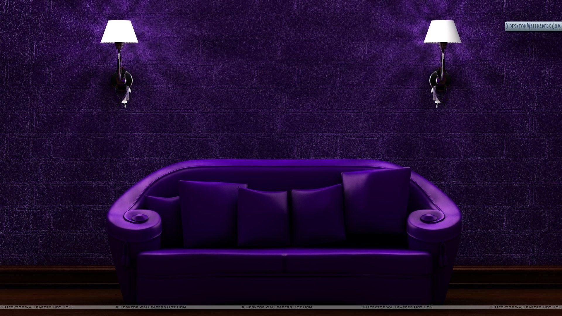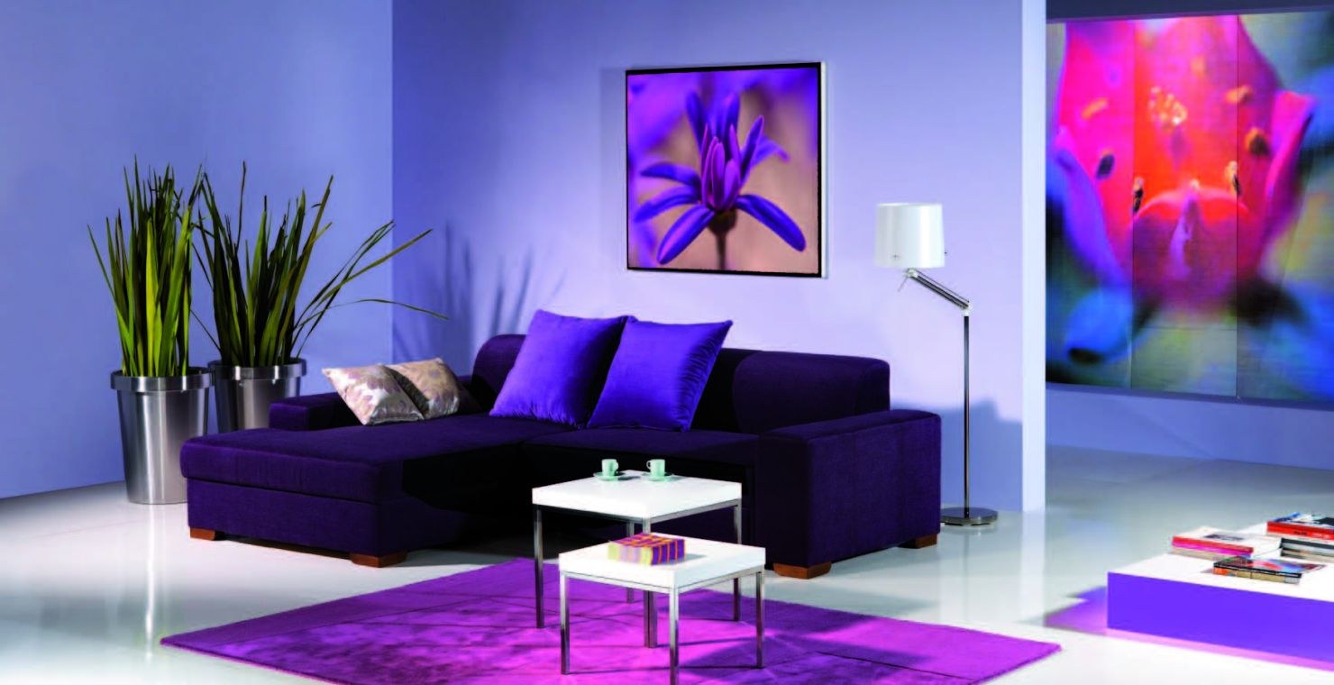 Фиолетовый диван в интерьере