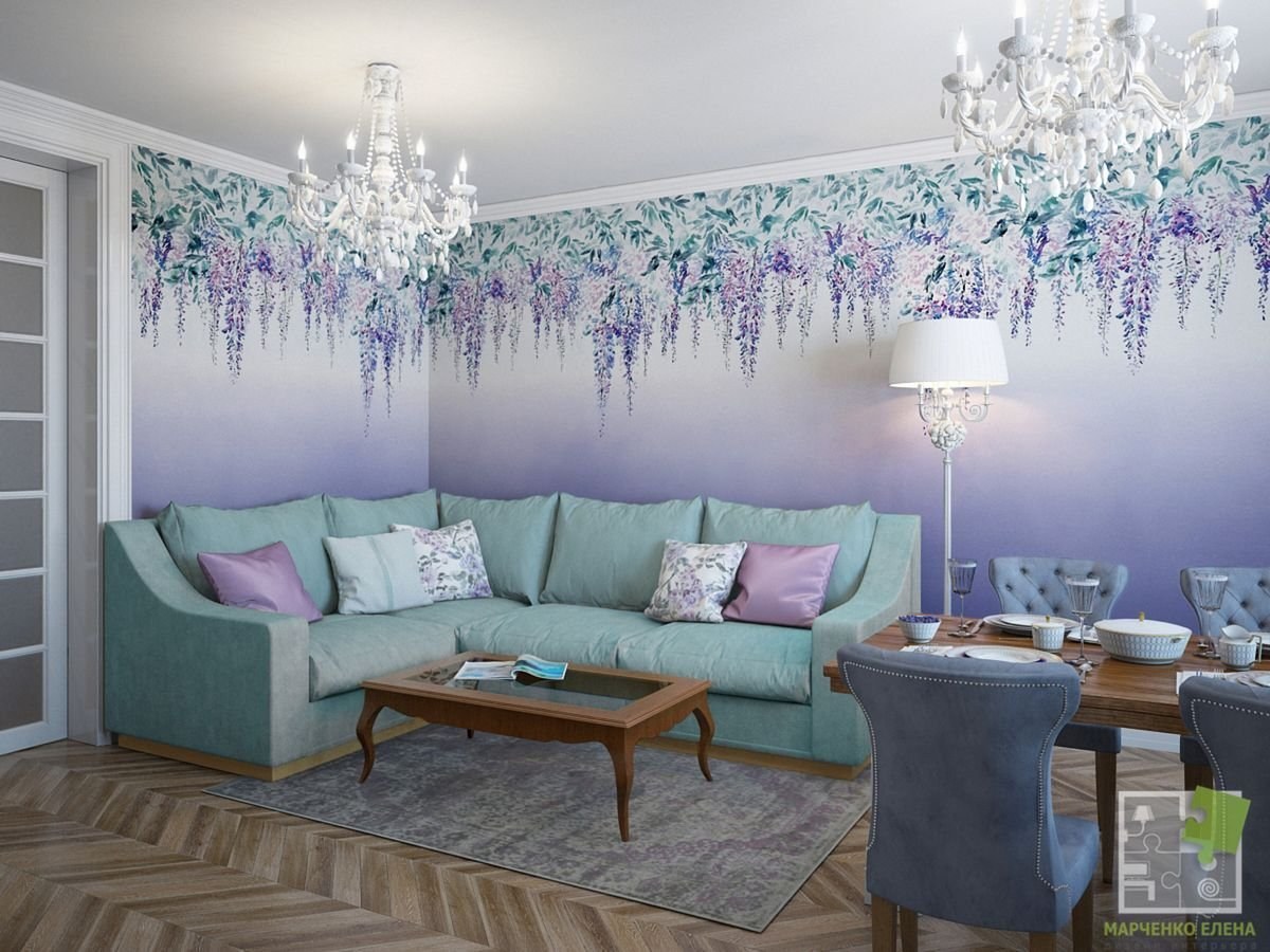 Голубой и сиреневый в интерьере