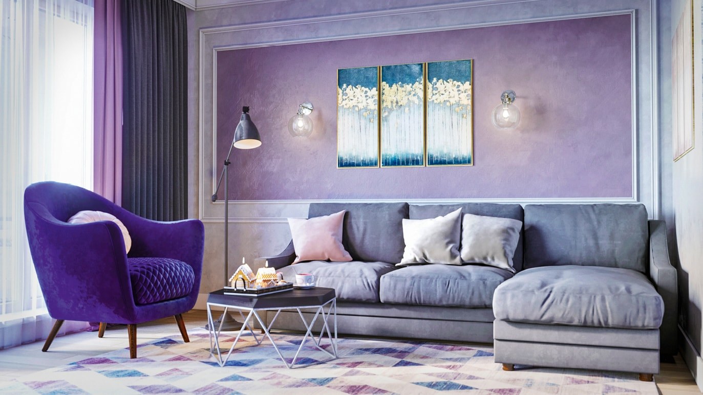 Сиреневые стены в интерьере